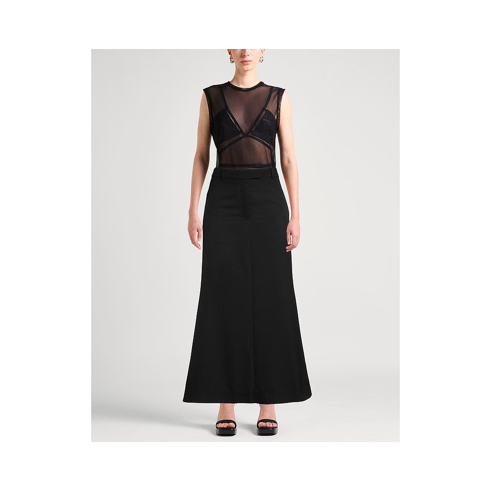 娅丽达松紧腰羊毛醋酸半身裙女秋冬2025新款 黑色裙子开叉直筒长裙