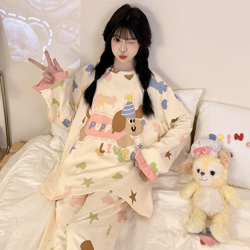可爱公主风家居服套装 猫人女士云朵棉睡衣春秋款 2025新款 开衫 长袖