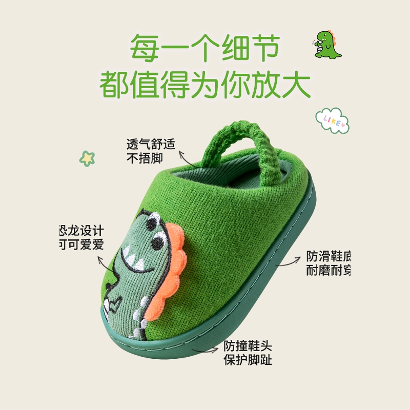 男童儿童恐龙棉拖鞋 3岁2岁防滑室内家居婴幼儿季 秋冬 宝宝棉拖鞋