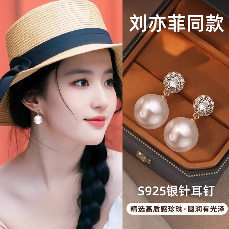 耳环 纯银耳钉2025新款 刘亦菲同款 珍珠耳夹无耳洞女fever博主同款