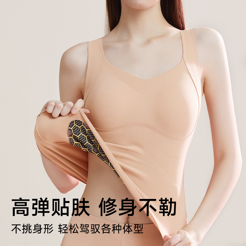 羊绒蚕丝保暖背心女带胸垫一体2025新款 德绒无痕打底上衣内搭秋冬