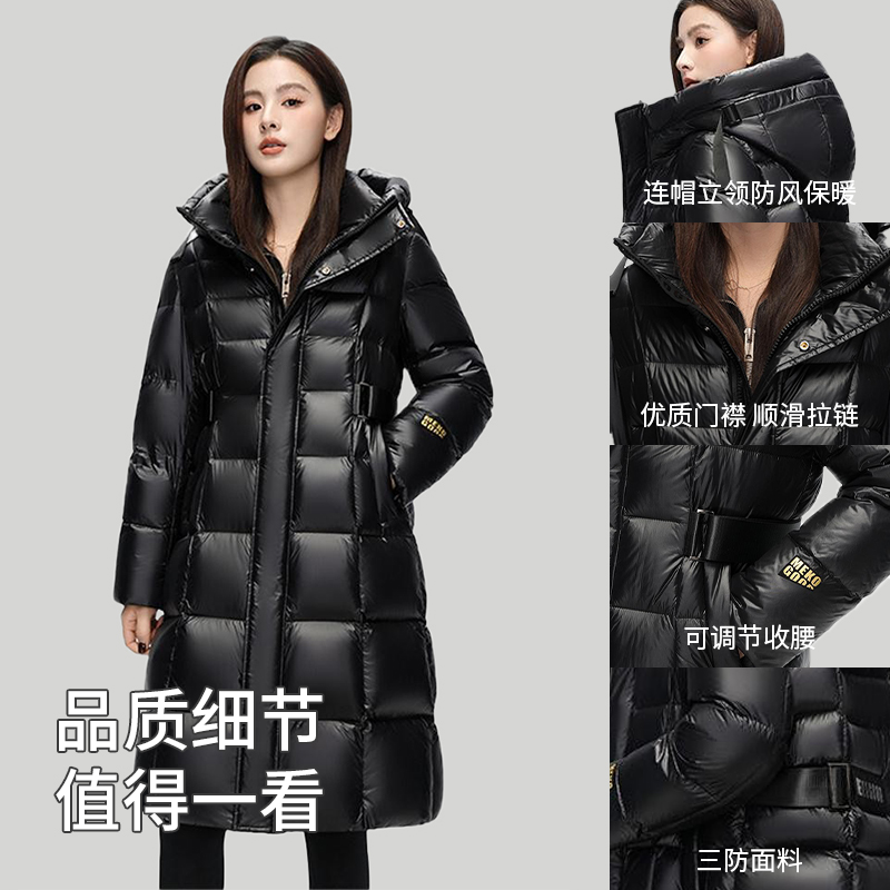 衣服女款 李宁火锅羽绒服 长款 2025新款 连帽鹅绒保暖运动上衣 冬季