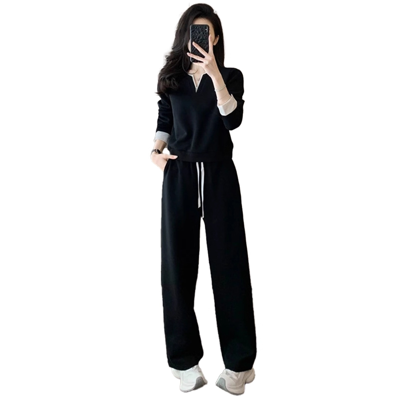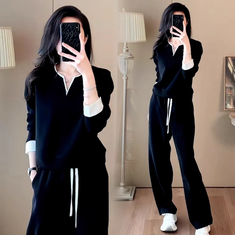 女洋气显瘦卫衣显瘦阔撞色两件套 高级感休闲运动套装 2025春装 新款