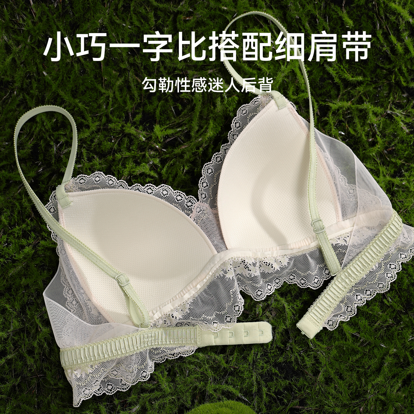 草本初色粉底液内衣女细肩带隐形小胸聚拢无痕透气夏薄款 凉感文胸