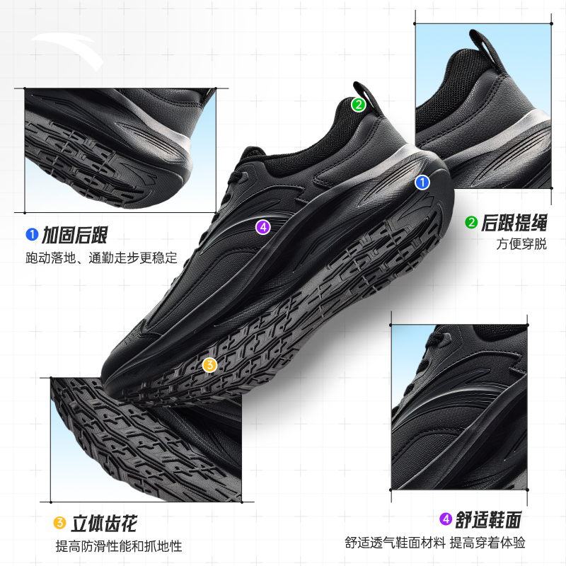 男鞋 休闲通勤黑色运动鞋 革面缓震运动鞋 秋季 男2025新款 安踏跑步鞋
