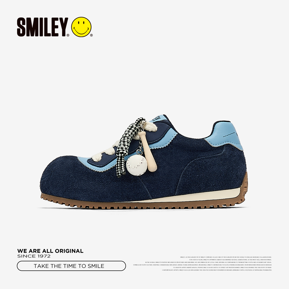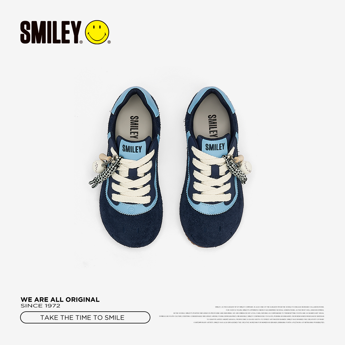 SMILEY笑脸糖果系列蓝色大头鞋 女厚底增高系带丑萌通勤休闲阿甘鞋