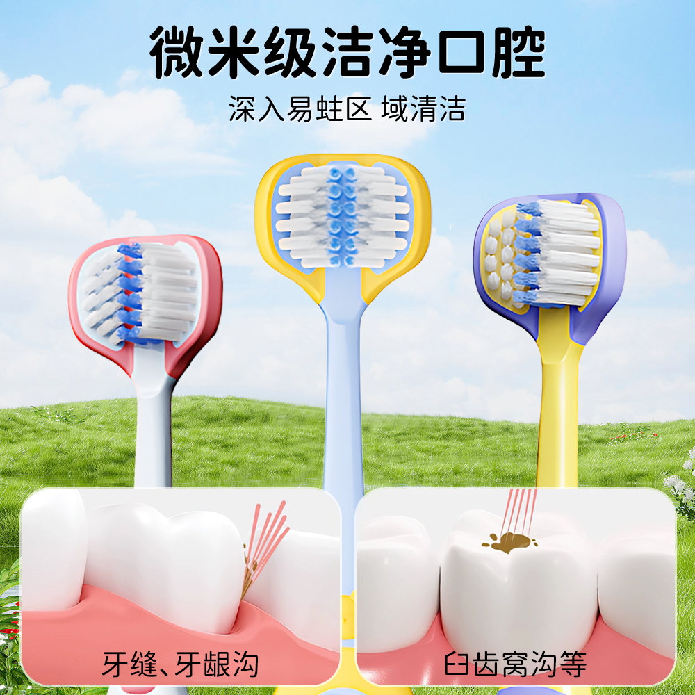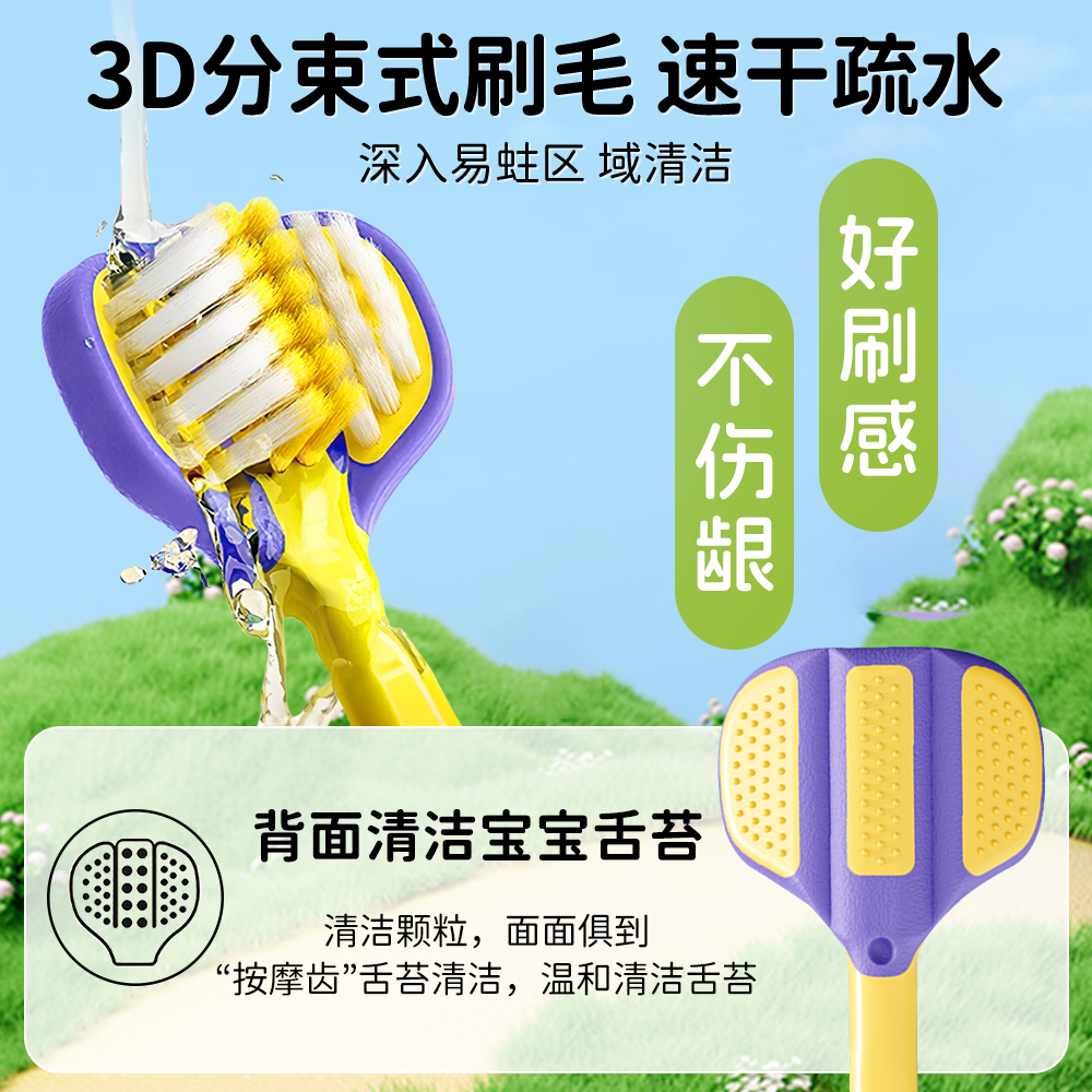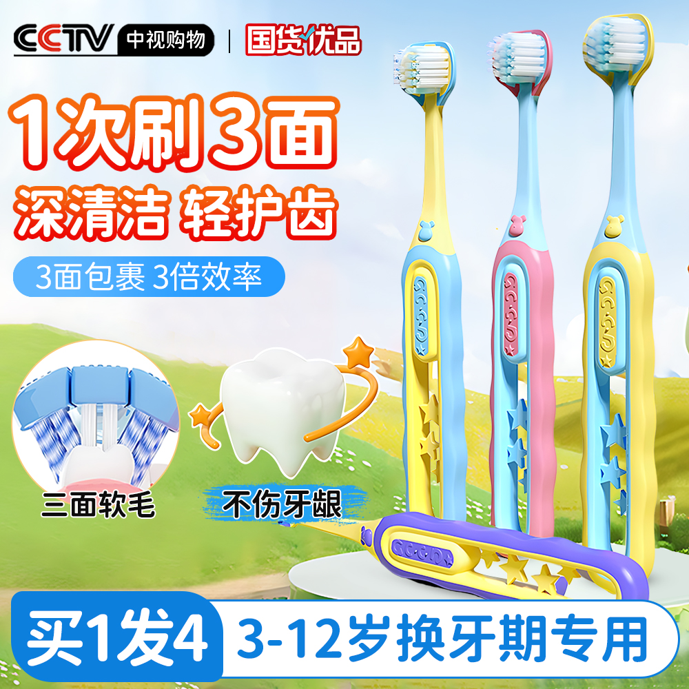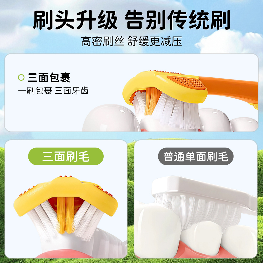 儿童软毛三面牙刷宝宝正畸u型换牙期3 6到12岁以上小学生专用牙膏