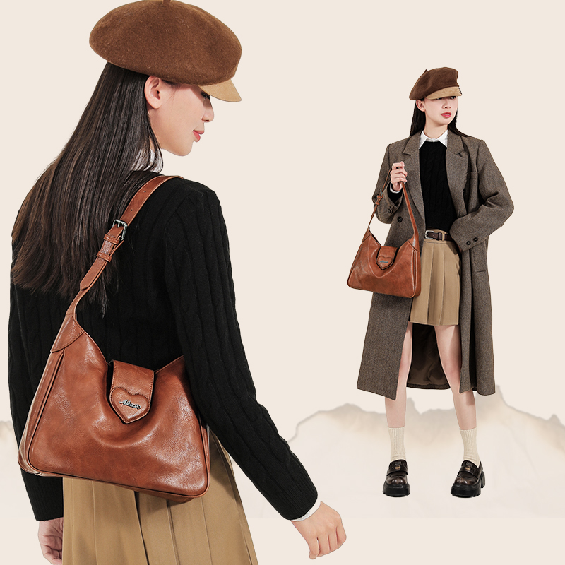 Tagi. 拼色通勤复古单肩包帆布托特手提斜挎包 想象苹果