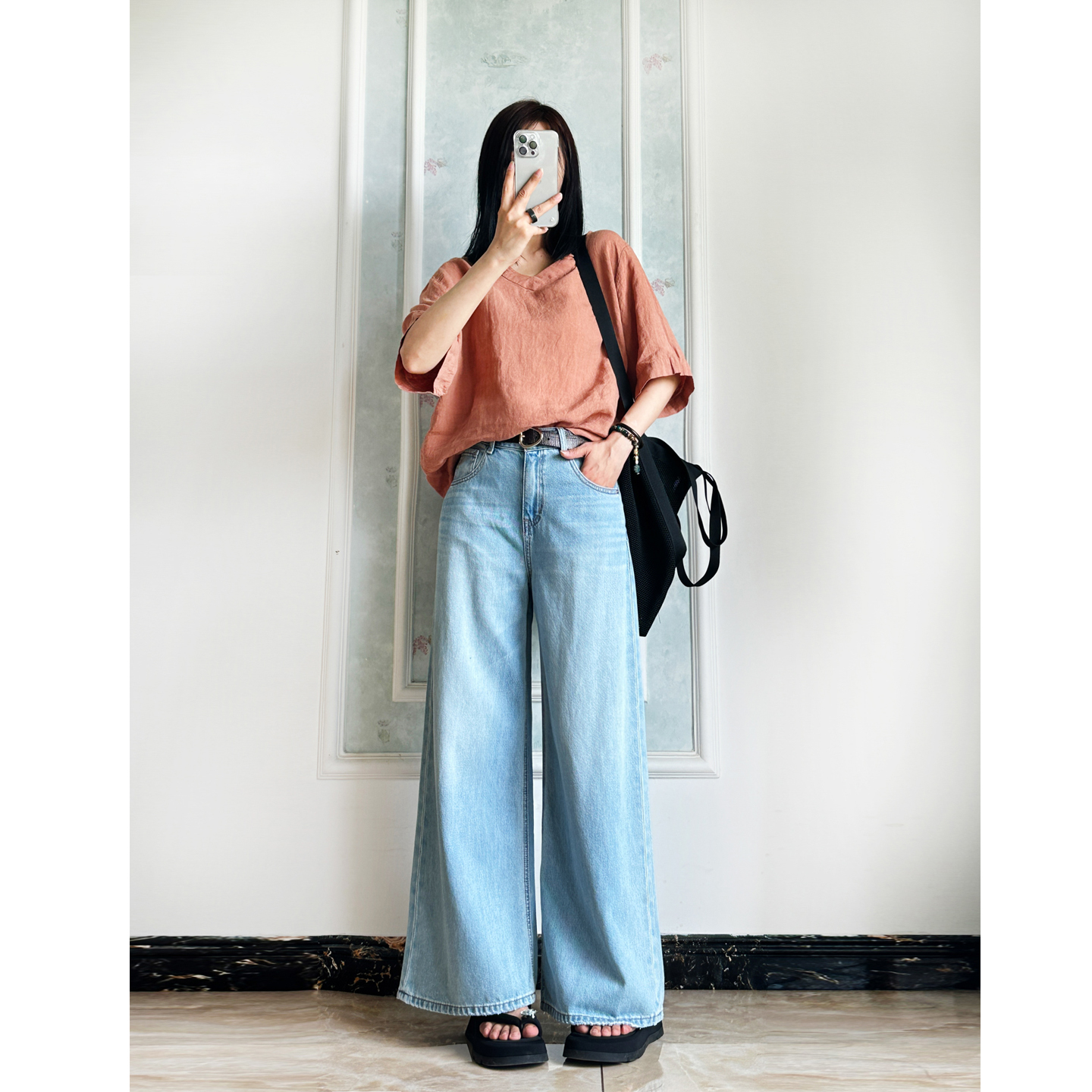 子夏薄款 小个子穿搭高腰显瘦休闲裤 女春秋季 自然涩韩系微喇牛仔裤