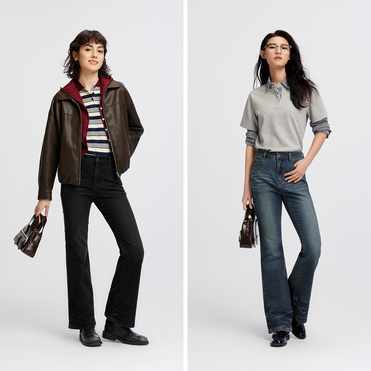 分割线显瘦直筒宽松长裤 热风女士直筒牛仔裤 时尚 新款 2025年秋季