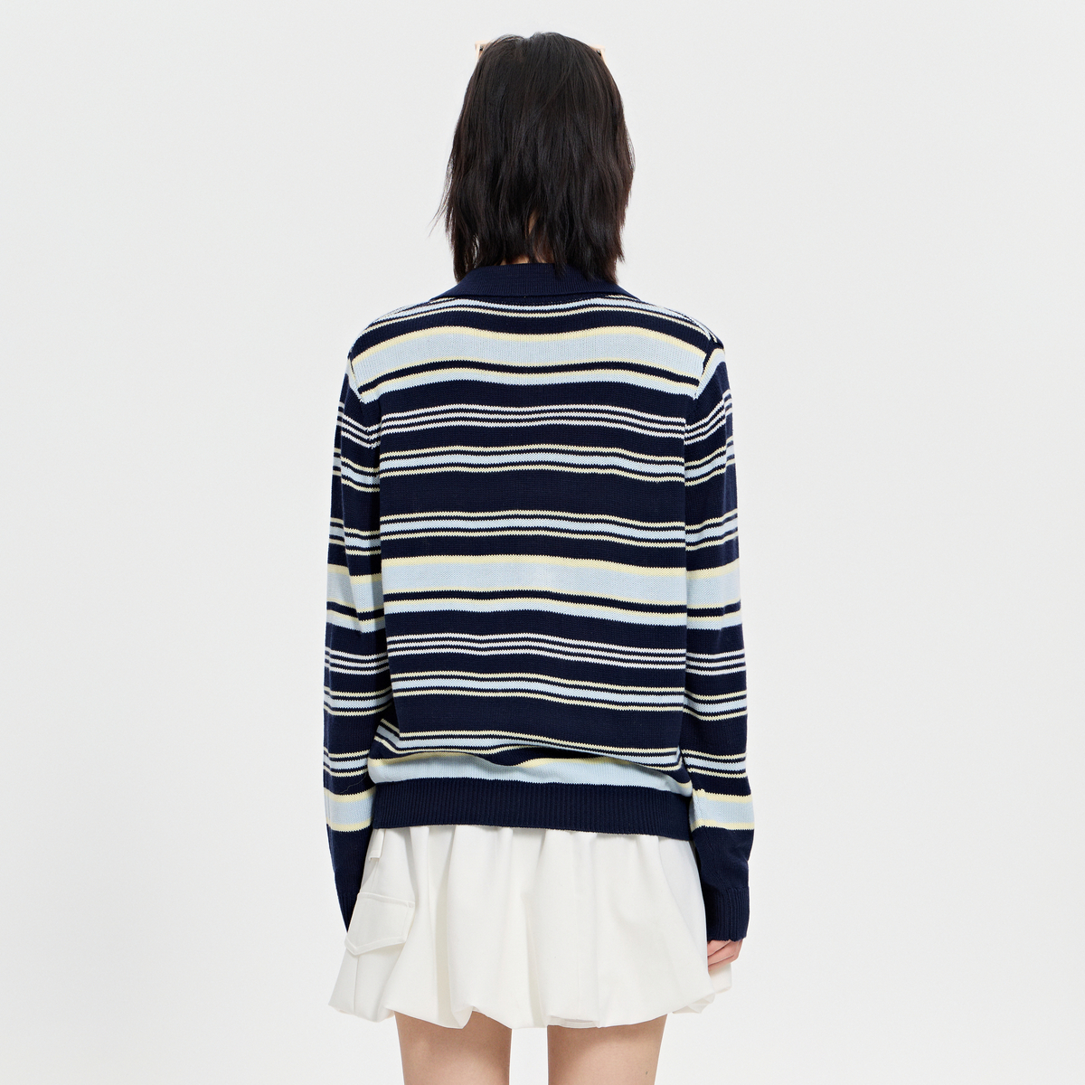 学院风针织衫 新款 春 毛衣外套女2025秋季 阔色浅黄色假两件条纹开衫