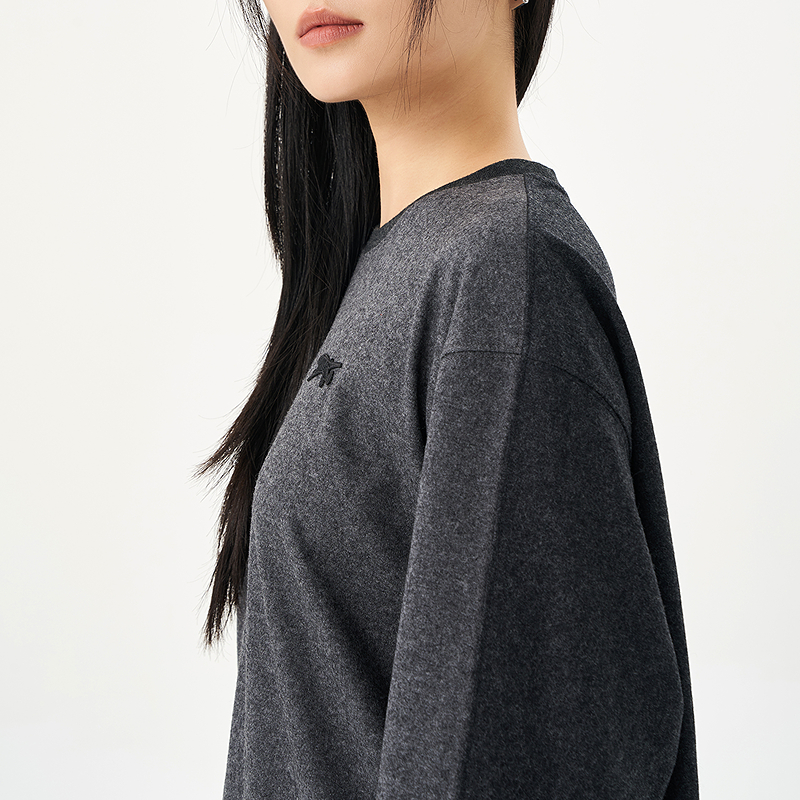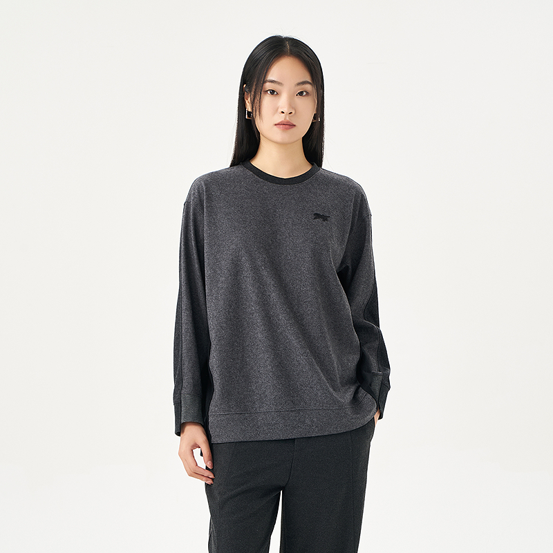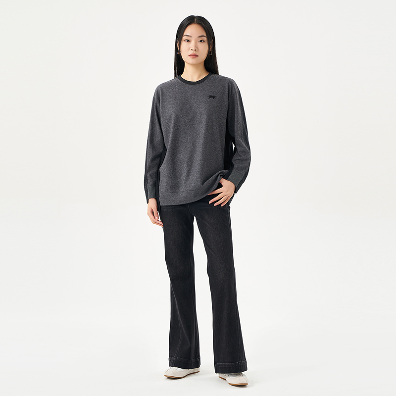 OTT2025秋新品 精致绣标圆领撞色卫衣女灰色百搭针织呢休闲上衣