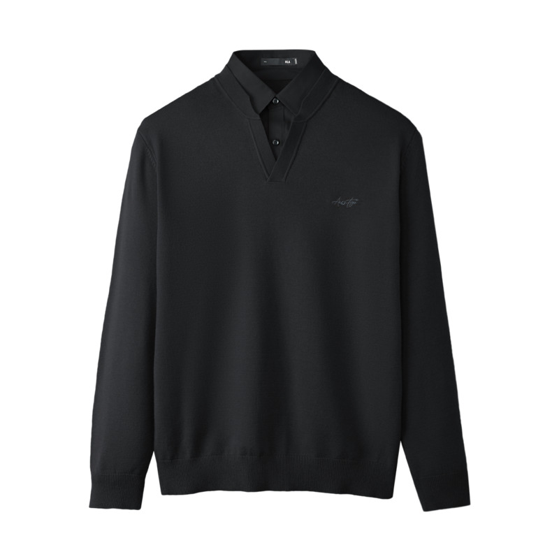 海澜之家25秋冬装 保暖红色上衣 假两件毛衣男加厚本命年中老年男士