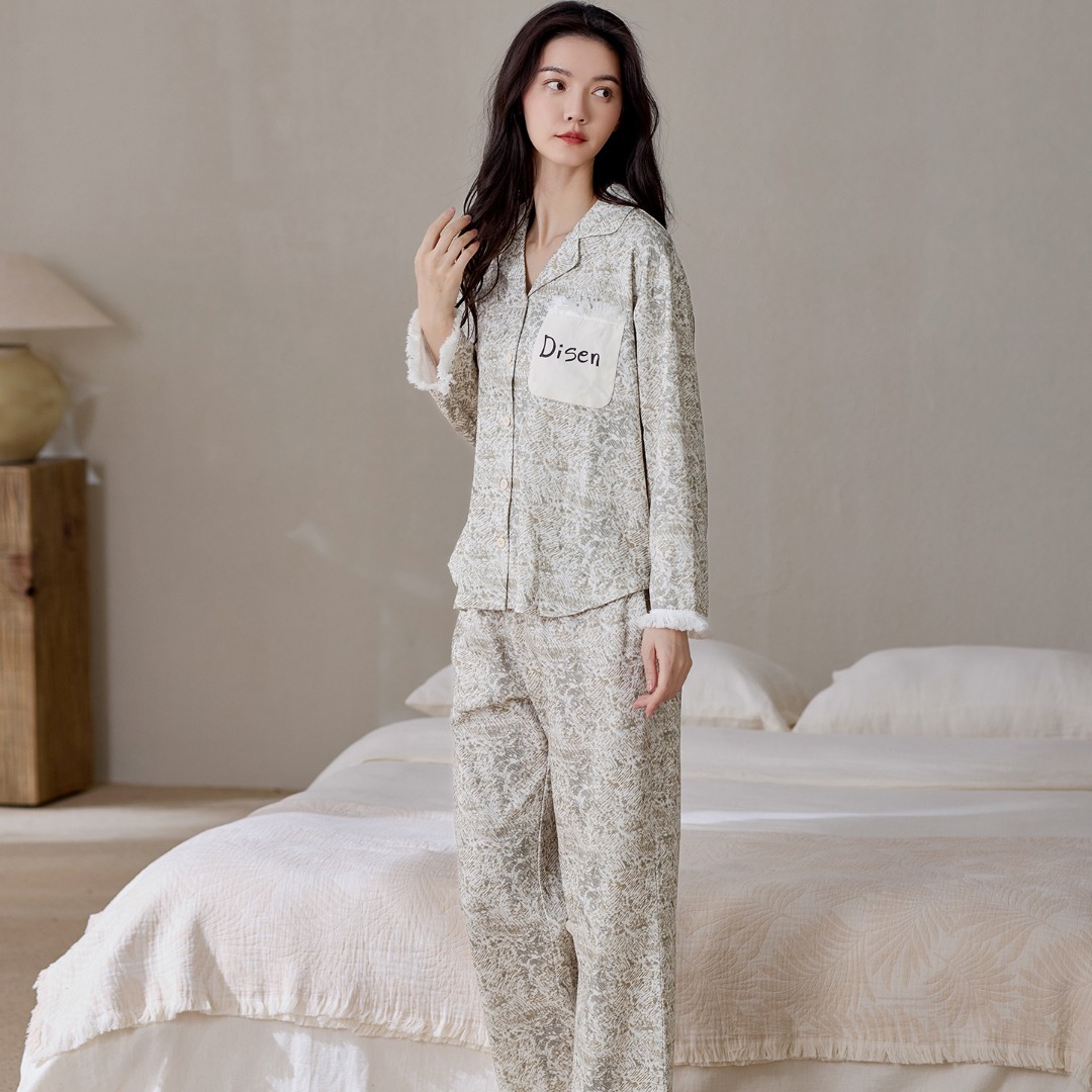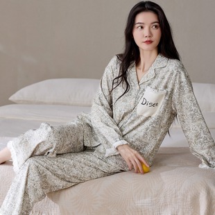 女款 家居服秋季 开衫 宽松大码 芬腾婴儿棉睡衣女春秋款 套装 棉质长袖