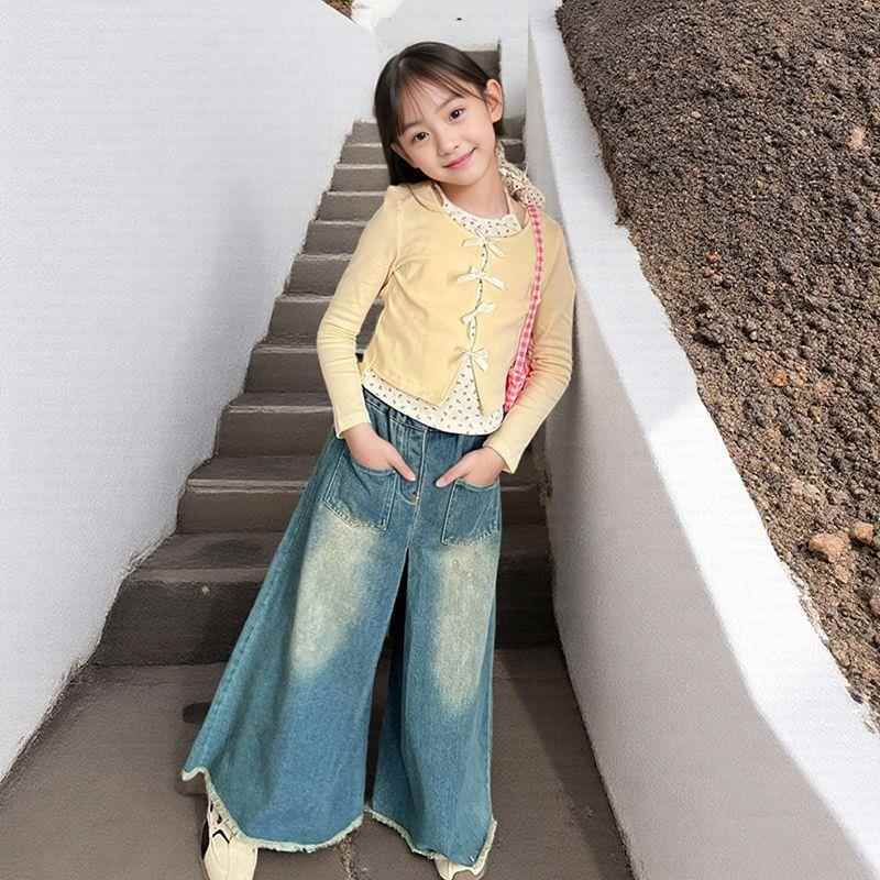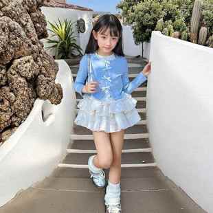 韩版 2025新款 甜美儿童女宝宝外穿洋气假两件T恤 春秋装 女童打底衫