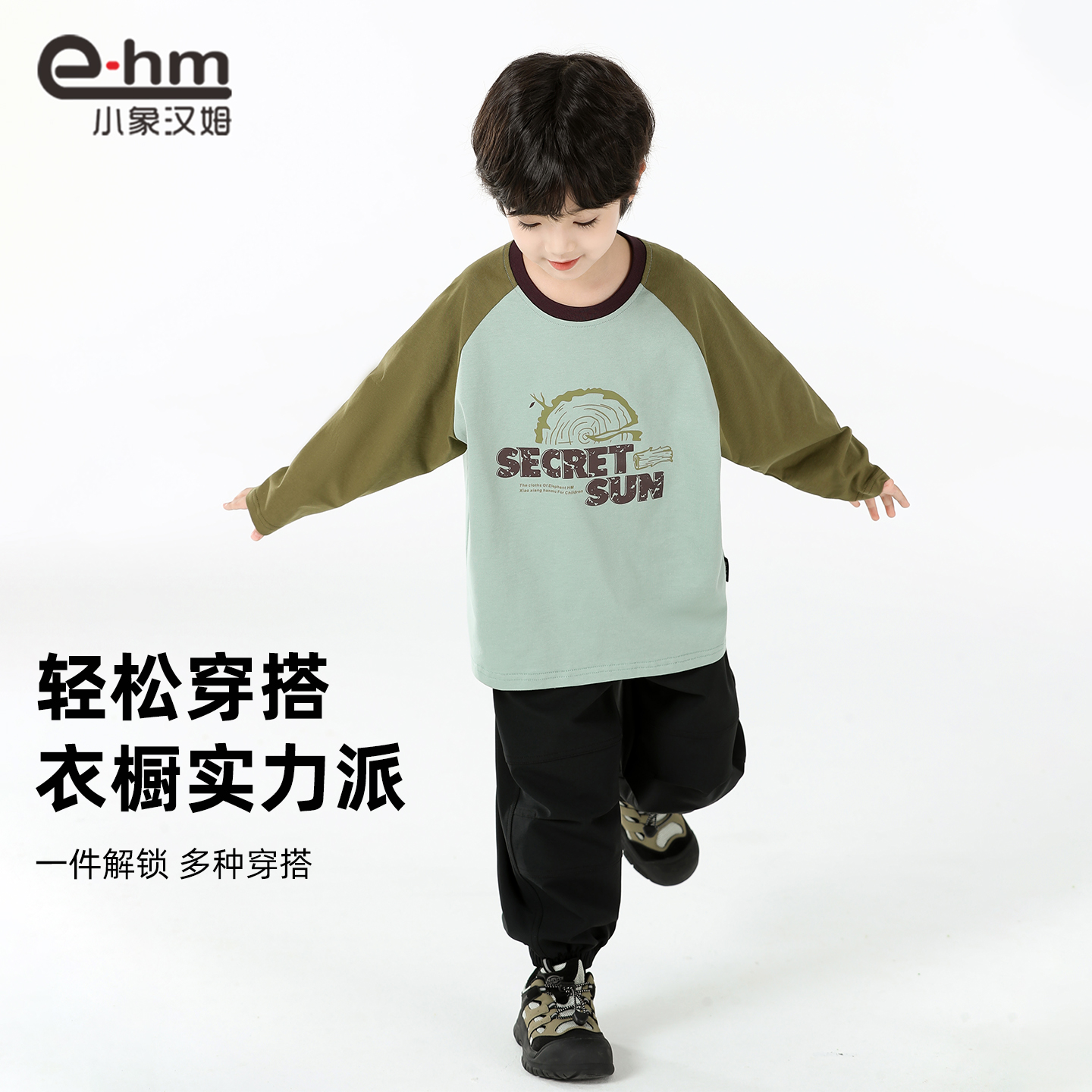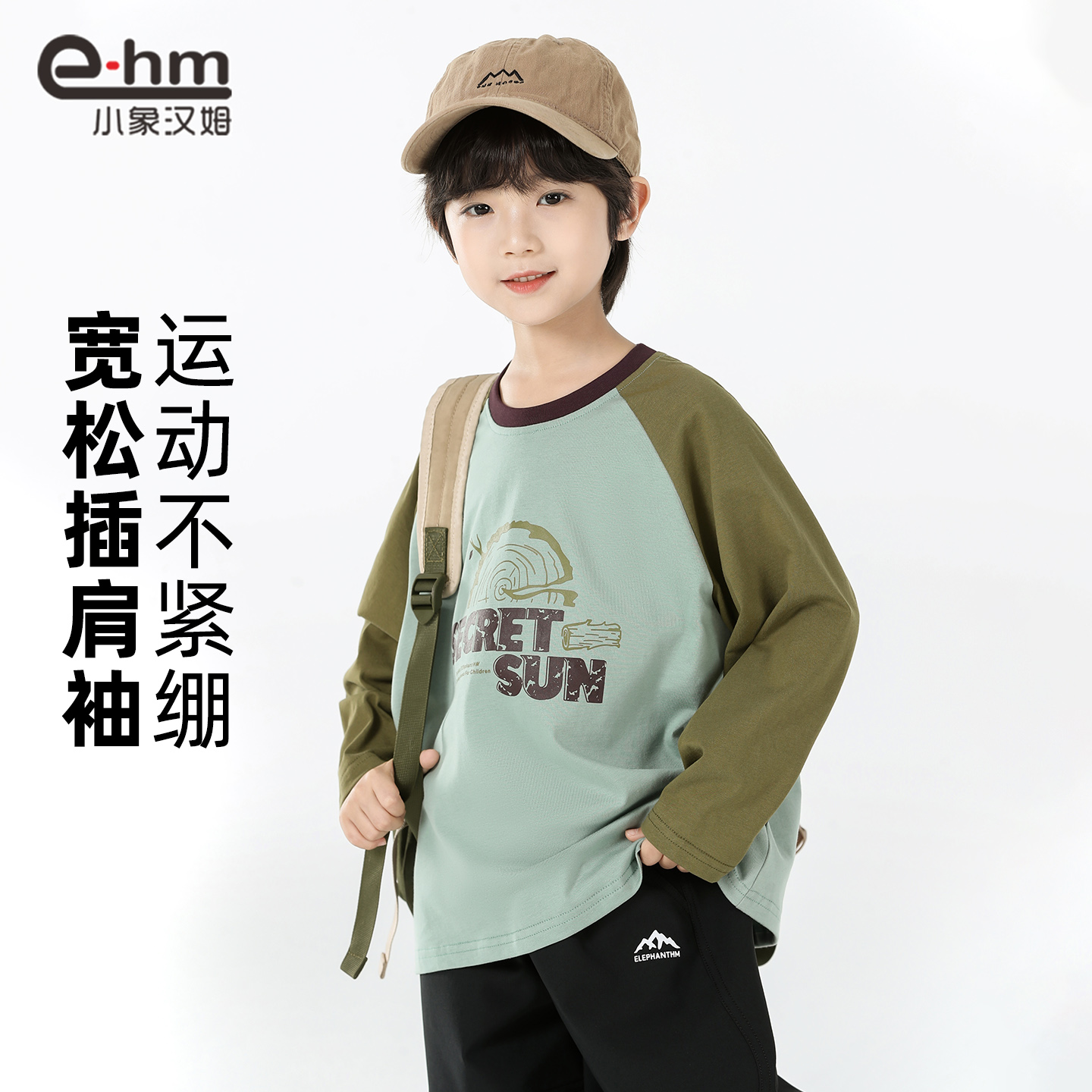 男童长袖 新款 T恤拼接款 2025秋装 洋气 儿童春秋打底衫 小象汉姆童装