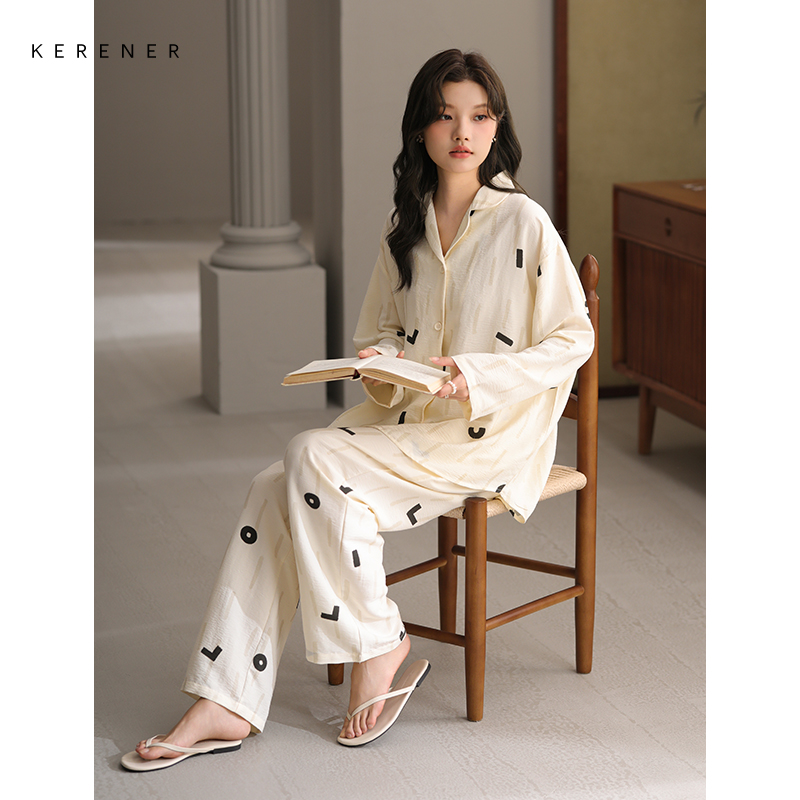 冬季 2025新款 长袖 长裤 猫人纯棉睡衣女款 简约休闲家居服套装 春秋季