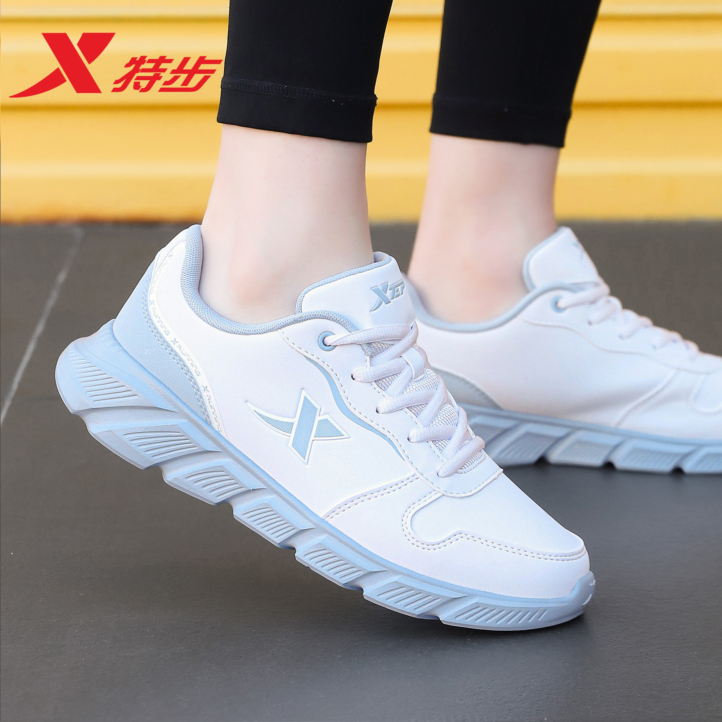 皮面防泼水减震轻便跑鞋 特步羽逸FW 秋冬新款 男黑色运动鞋 跑步鞋