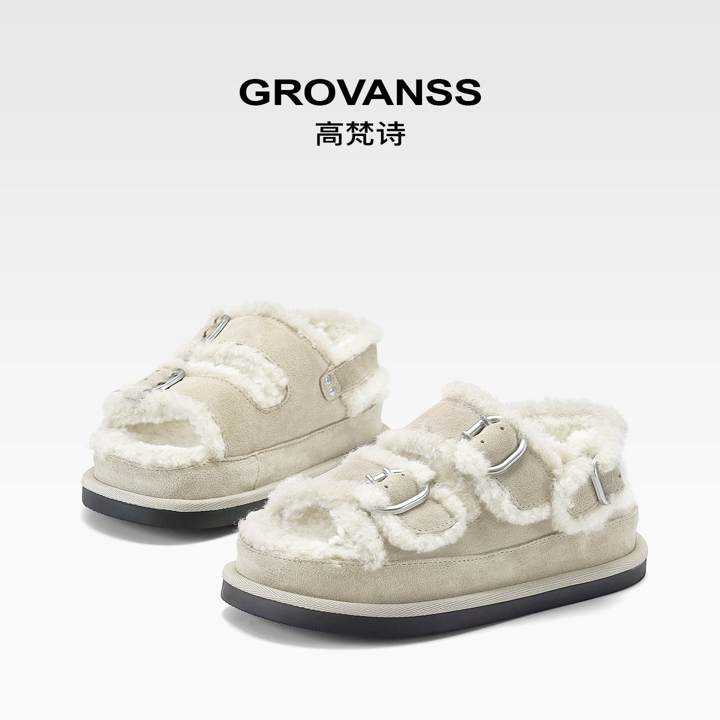 懒人毛毛鞋 舒适茸茸毛圈口平底休闲乐福鞋 1119002 女士时尚 UGG秋季
