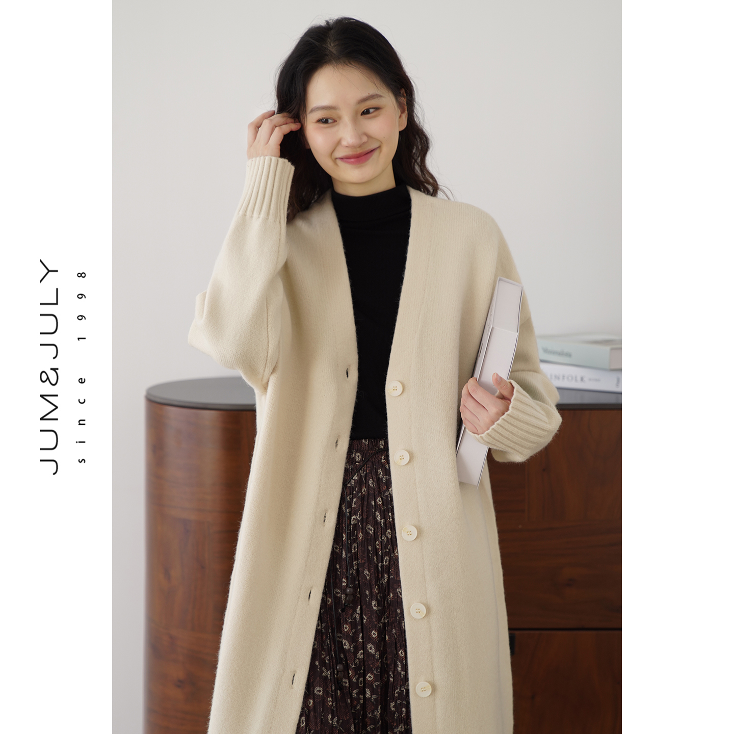 小闪年味儿纯羊毛彩点纱复古文艺针织开衫 秋冬藏肉显瘦显白红毛衣