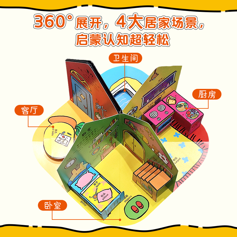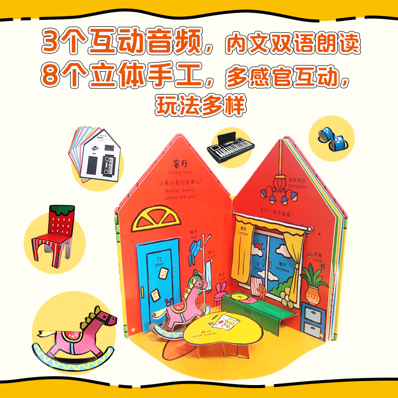 儿童读物中英双语3d立体机关宝宝0 6岁过家家早教益智玩具书幼儿英语启蒙故事书 比利彼得兔故事房子绘本经典 小兔彼莉立体游戏屋