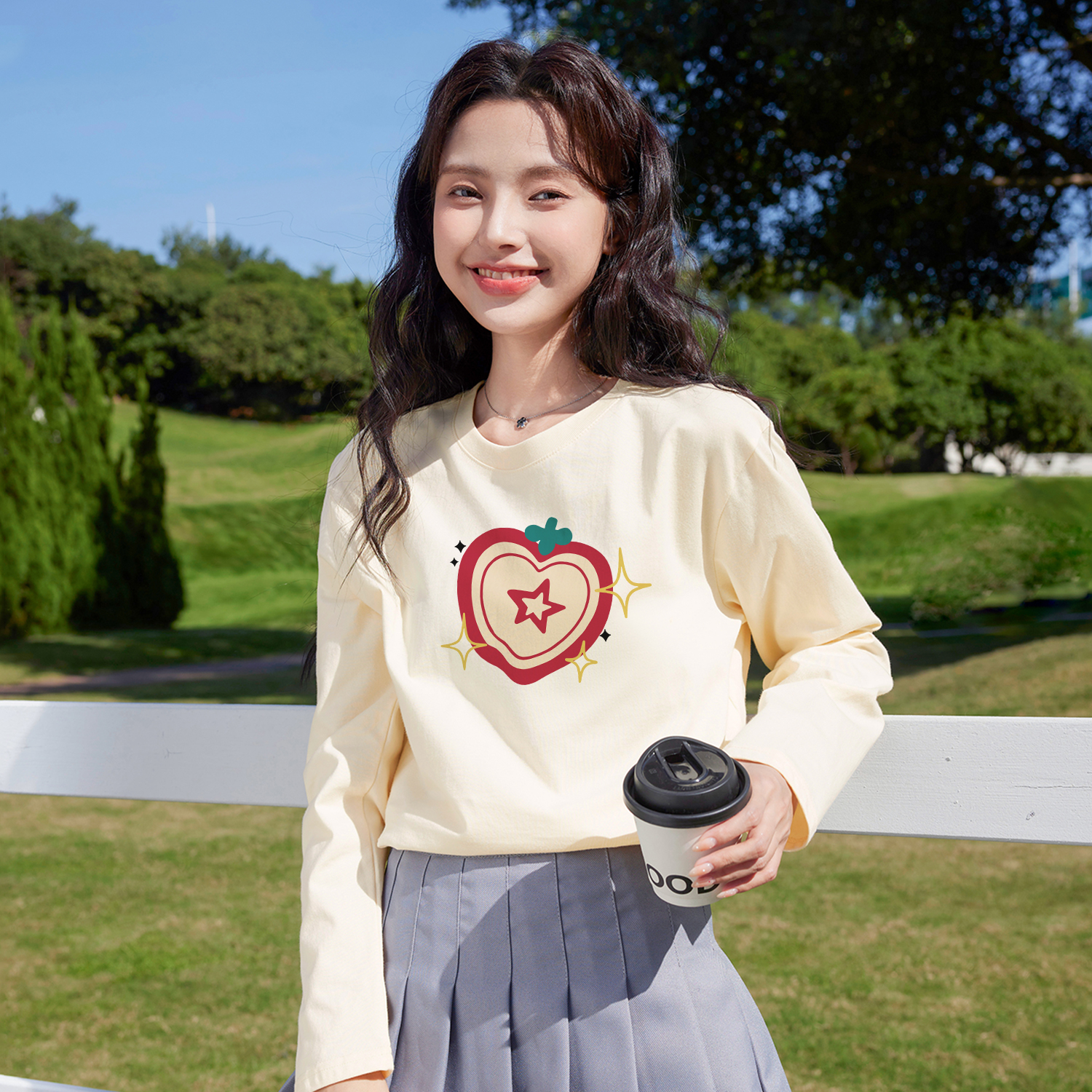 纯棉长袖 冬撞色上衣 T恤少女春秋初中高中学生外穿内搭宽松打底衫