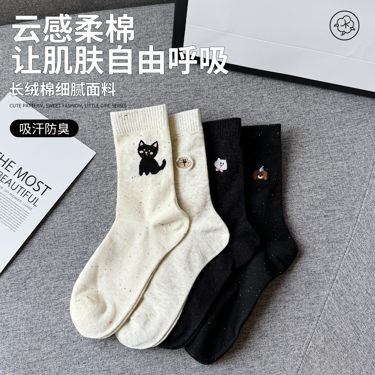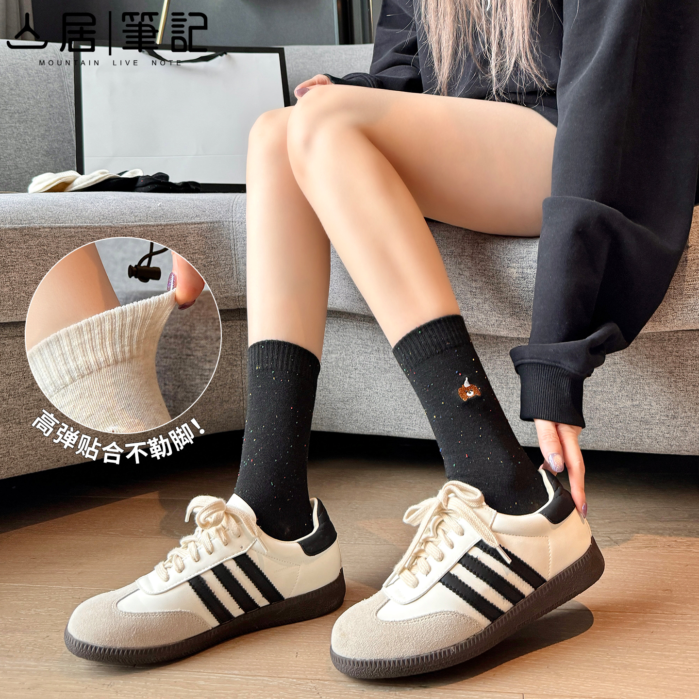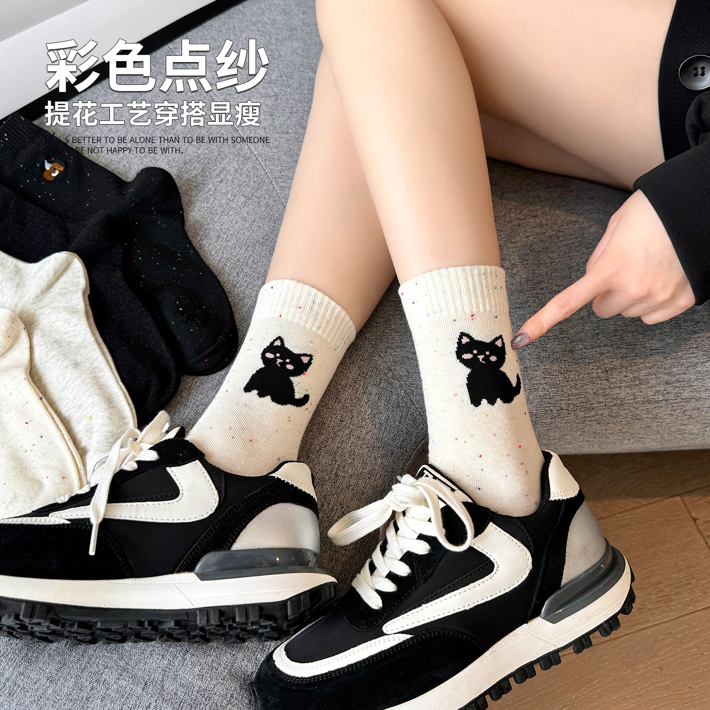 网红超火女款 爆款 可爱棉袜防臭百搭 中筒袜2025新款 黑色袜子女秋季