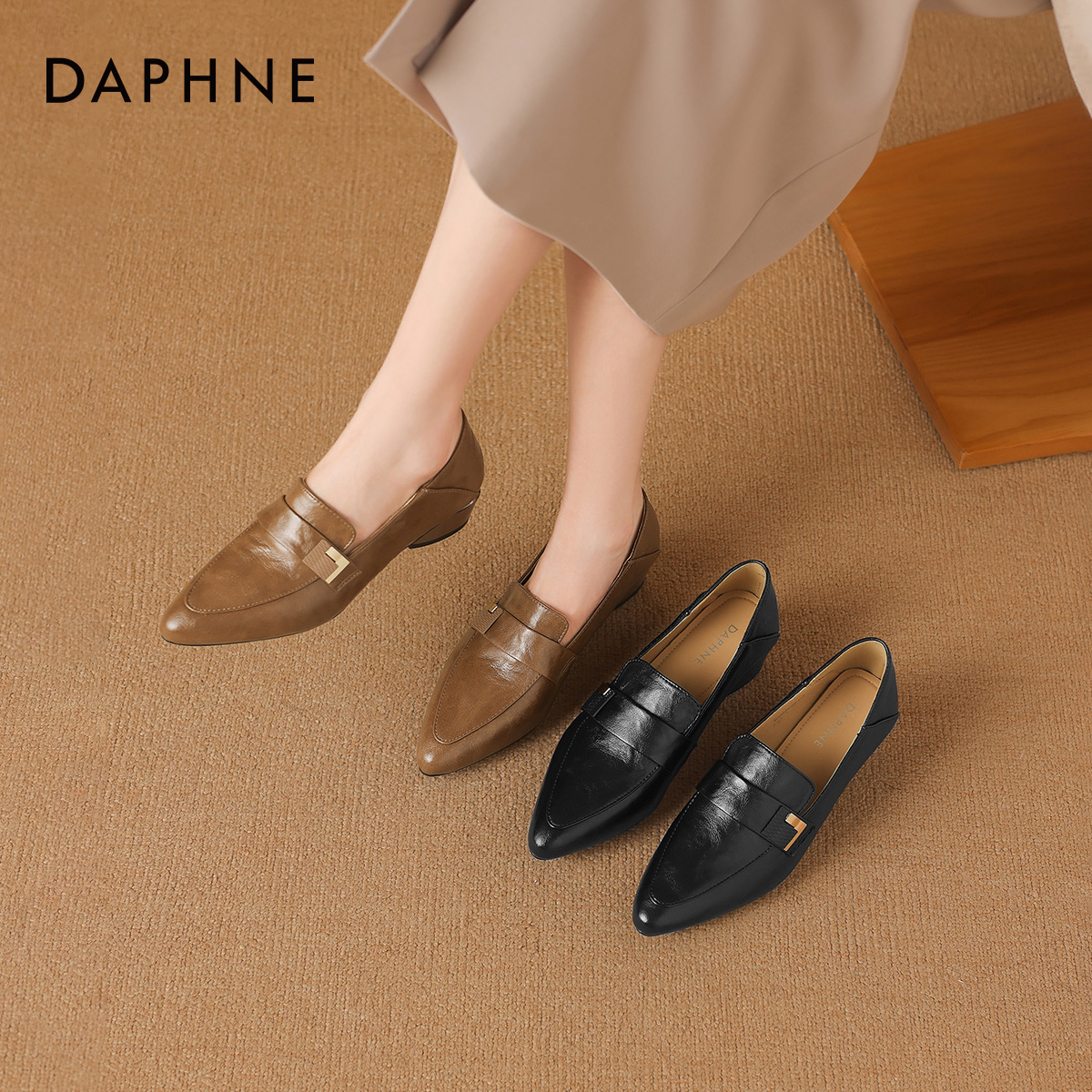 秋季 2025新款 优雅气质通勤时尚 尖头小皮鞋 达芙妮乐福鞋 豆豆鞋 女鞋