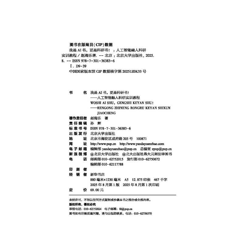 更是科研书 社新华书店正版 ——人工智能融入科研实训教程赵海乐 法律法规北京大学出版 著法律汇编 我是AI书