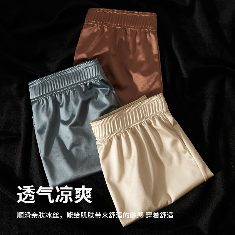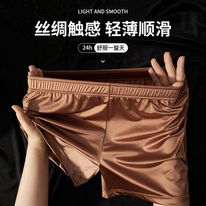 丝滑透气平角短裤 凉感冰丝缎面轻奢居家休闲四角裤 头男 阿罗裤 男士