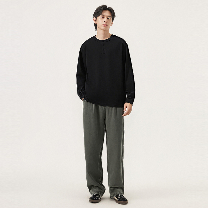 25秋新品 T恤男生上衣内搭 多色基础纯色亨利领长袖 gxg.jeans男装