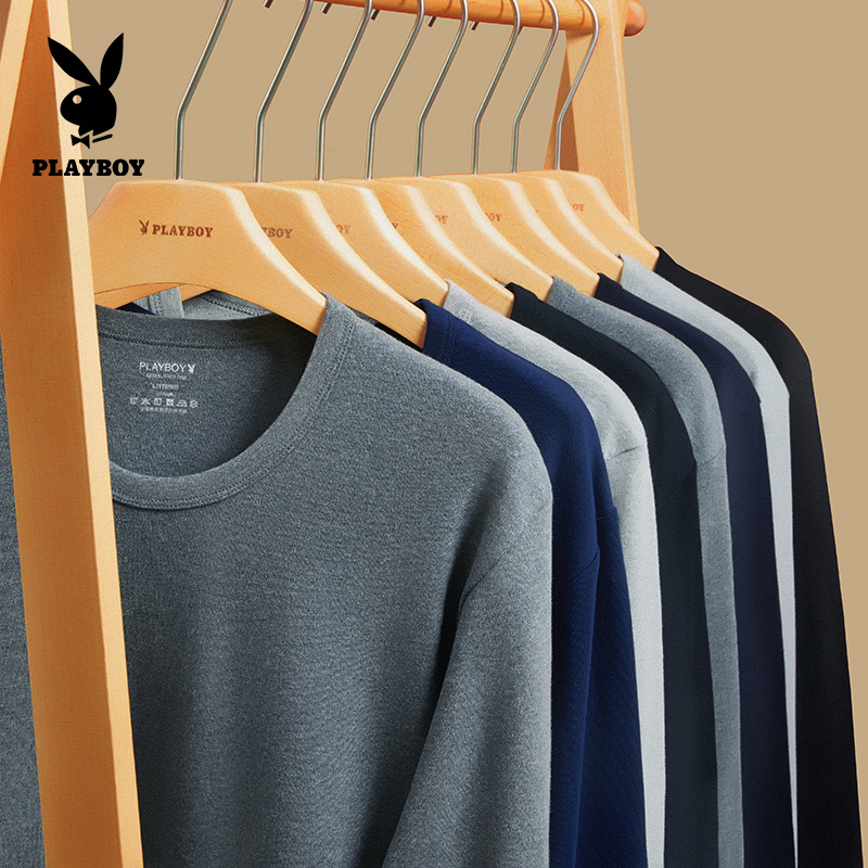 100%全棉 单上衣内穿打底毛衫 花花公子男士 保暖秋衣内衣纯棉秋冬季