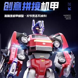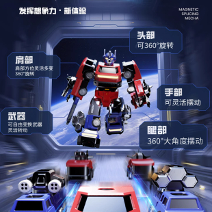 机器人玩具车工程车汽车磁力小车变形拼装 三四儿童3岁4岁男孩 套装
