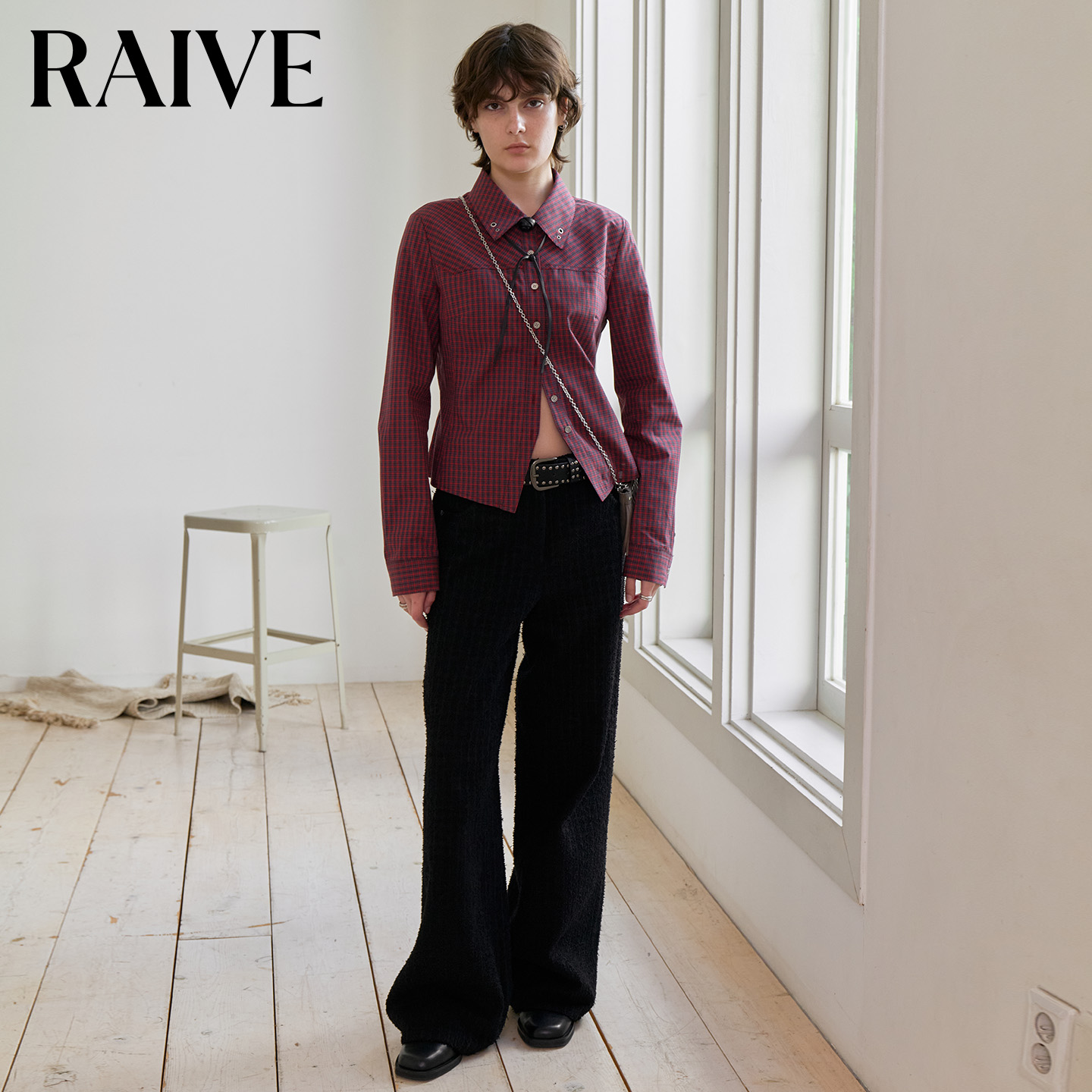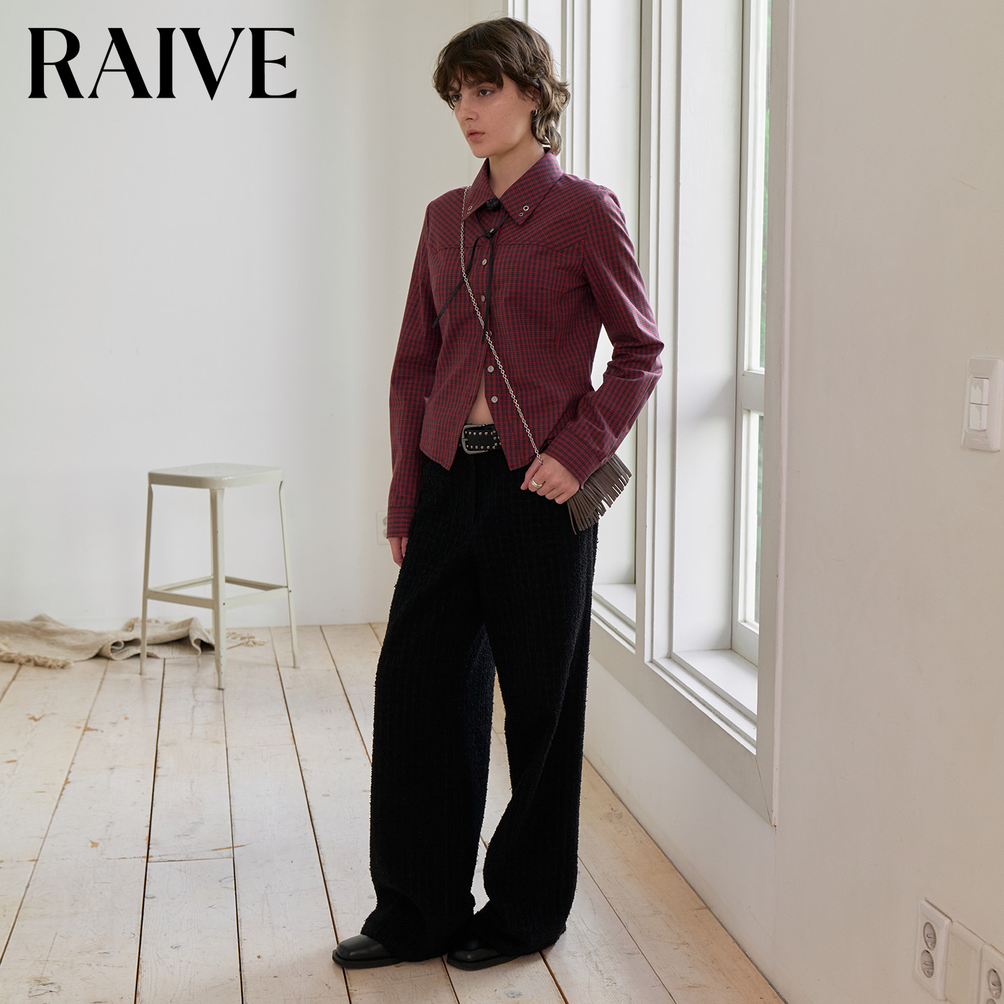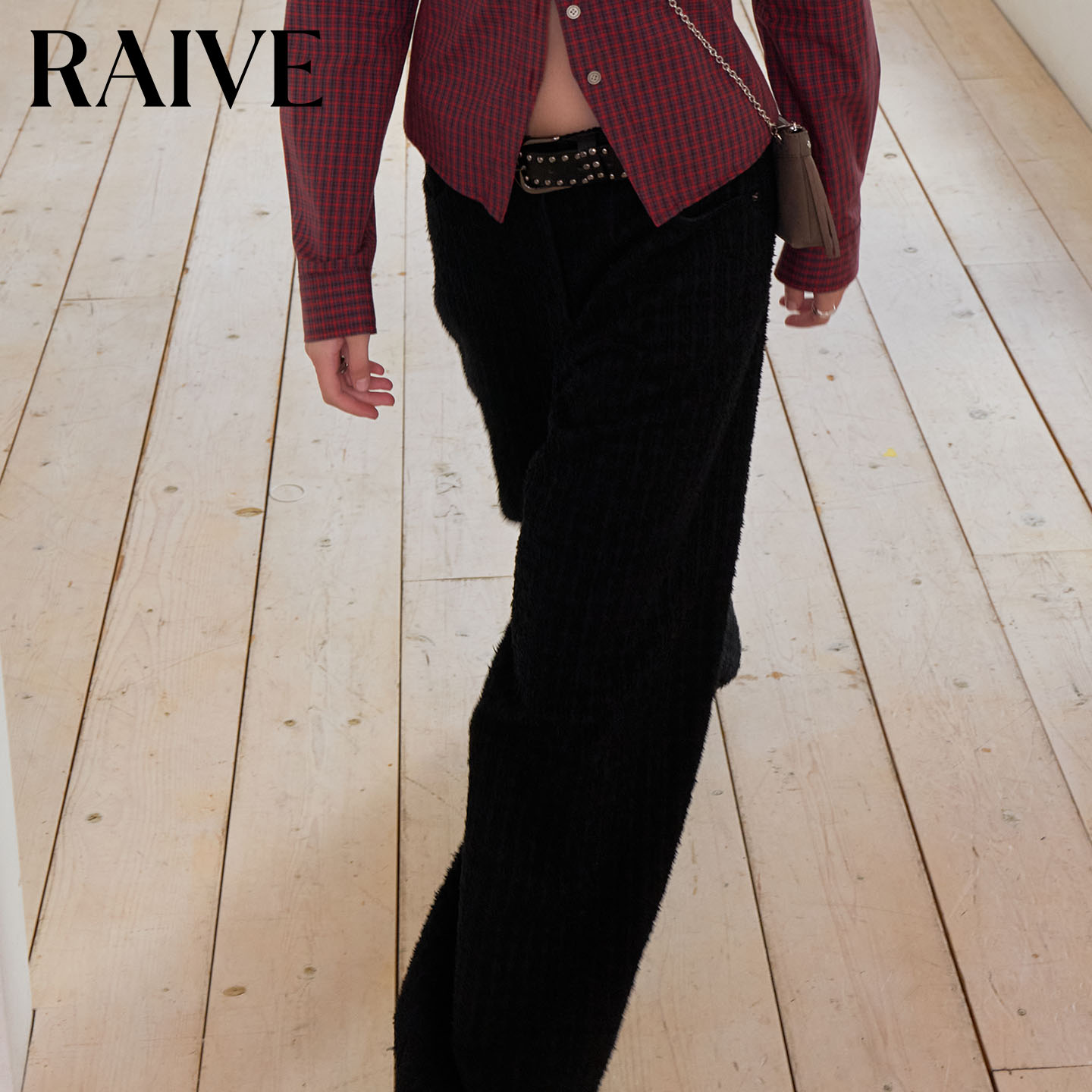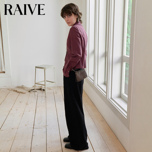 子华夫格纹直筒黑色气质韩系纯色质感长裤 RAIVE2025秋冬新款 女裤