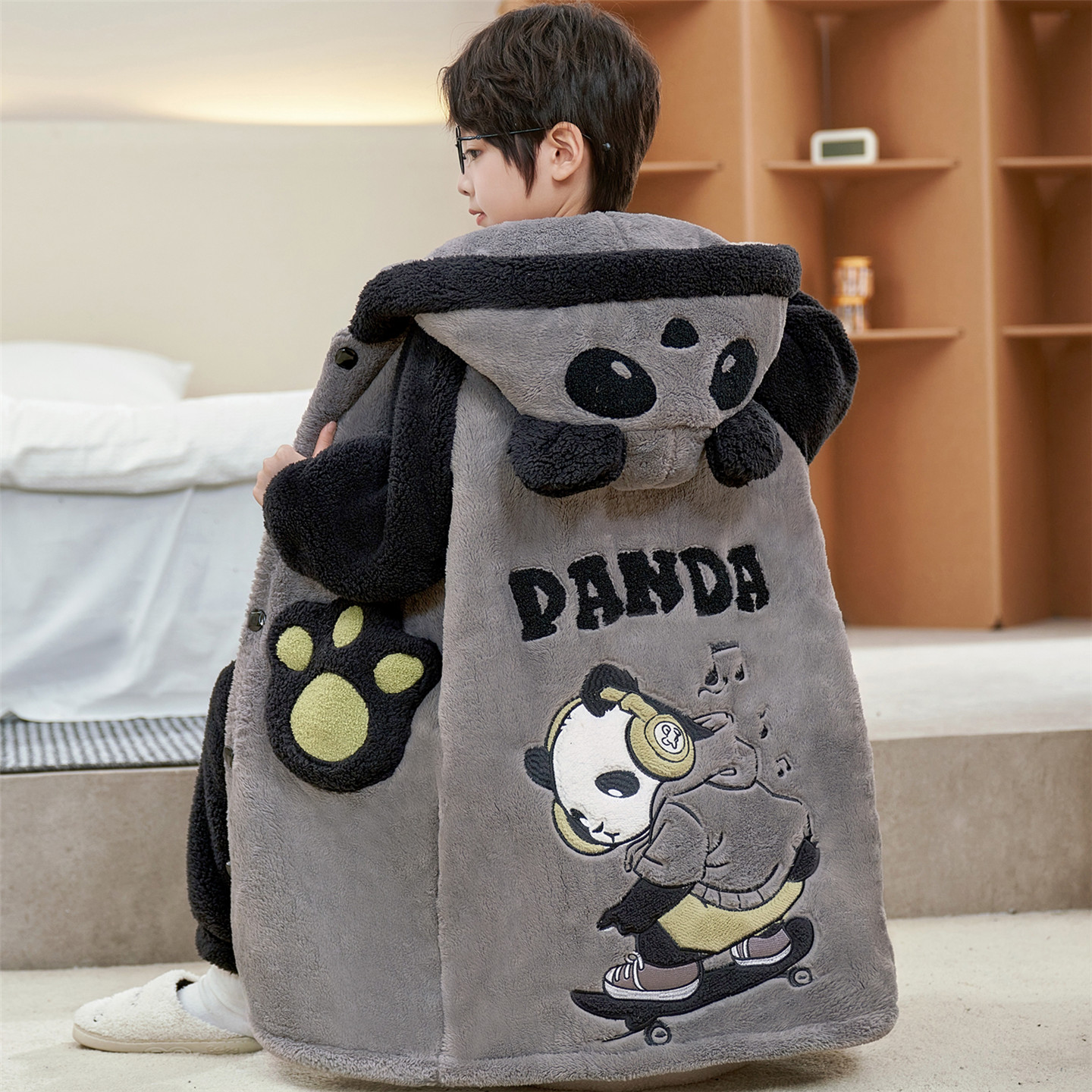 男童睡袍秋冬季 加厚珊瑚绒儿童睡衣男孩中大童宝宝浴袍家居服套装