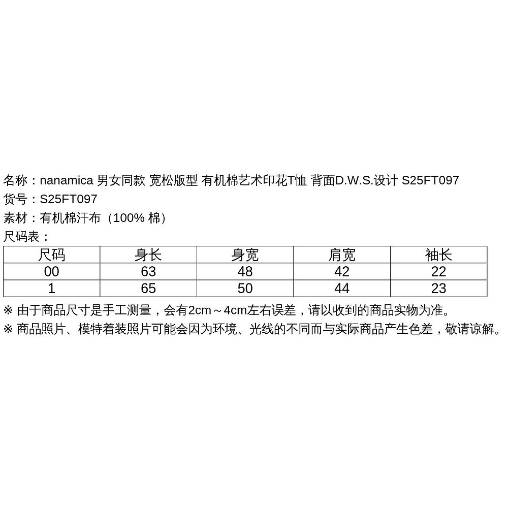 型 1h可退 宽松版 男女同款 有机棉艺术印花T恤 日本直邮nanamica