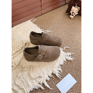 秋丑萌乐福豆豆鞋 女2025新款 一脚蹬博肯单鞋 厚底内增高全包勃肯鞋