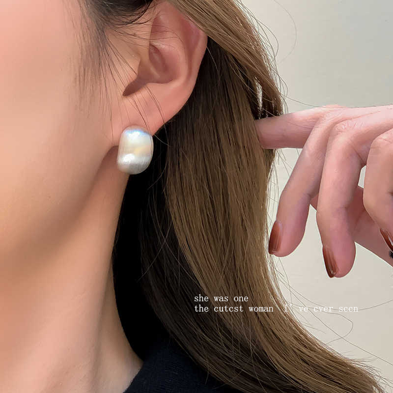 999纯银耳钉女施家珍珠馒头珠耳环扁圆高级气质法式 复古轻奢耳饰