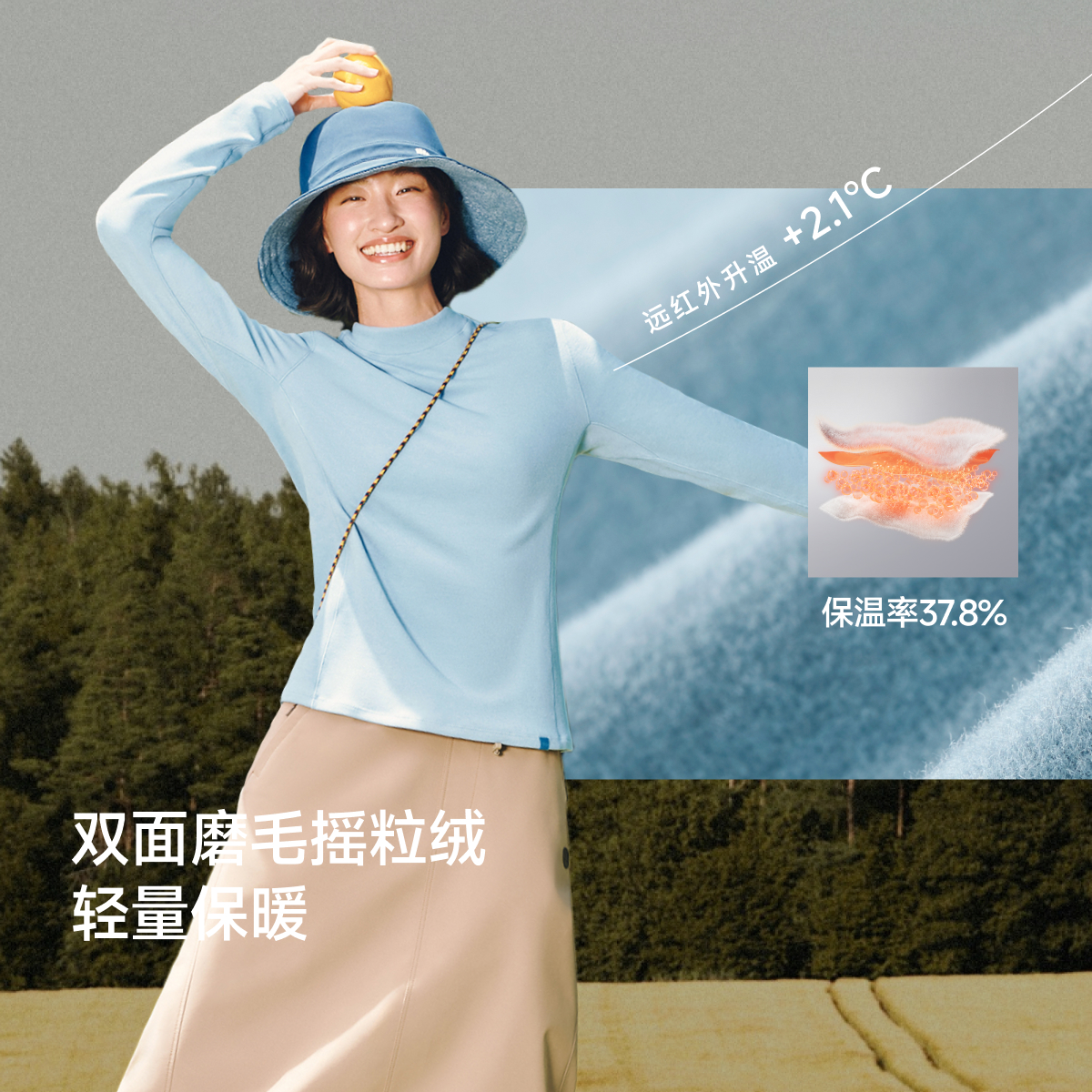 半高领保暖加绒内搭上衣肌底衣 新款 蕉下摇粒绒打底衫 PM003女秋季