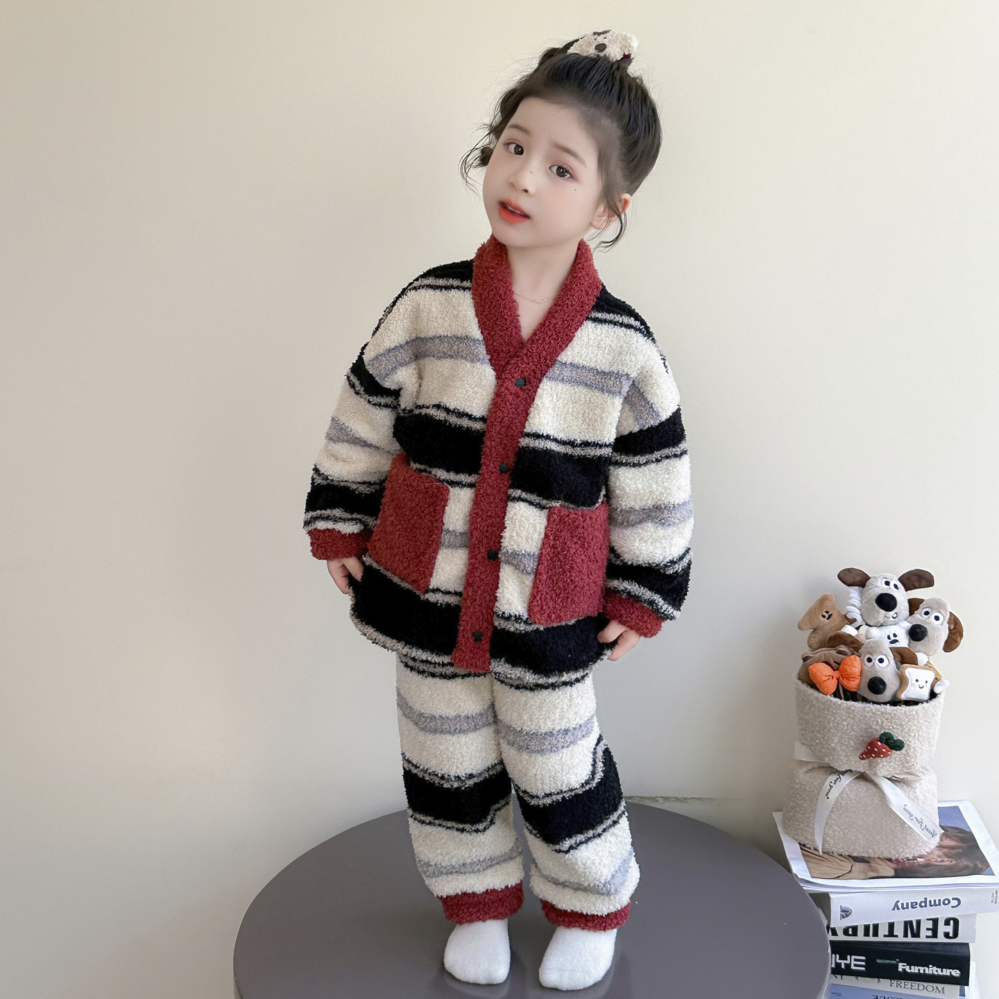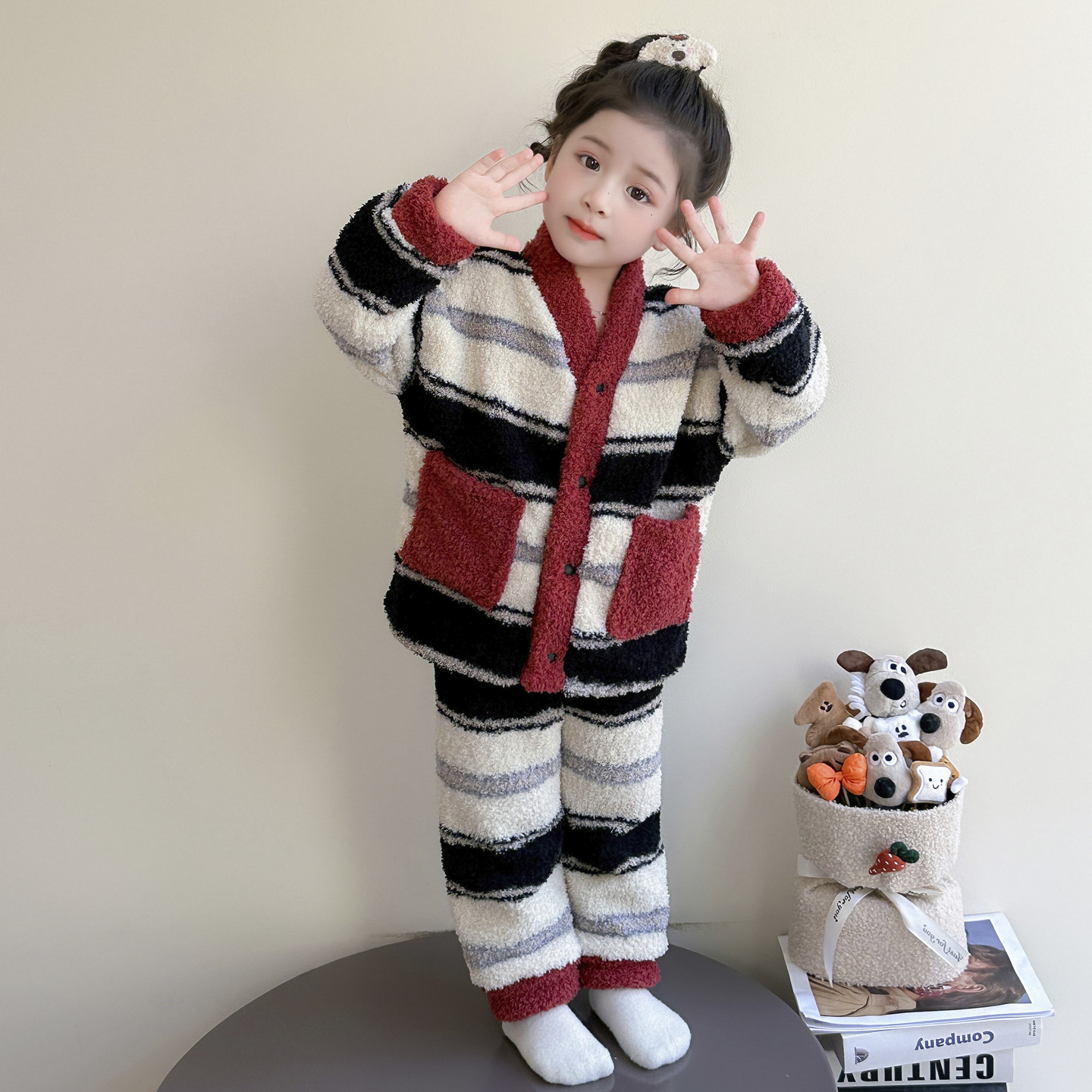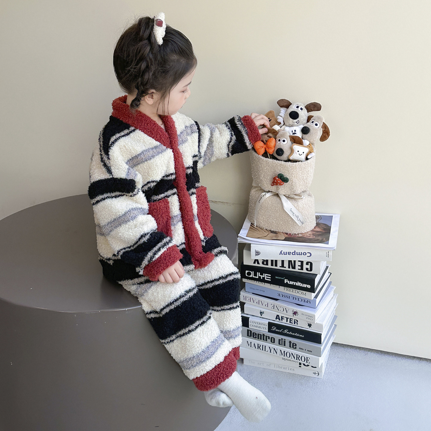 珊瑚绒睡衣情侣秋冬开衫 造福鸟新款 法兰绒家居服套装 蜂狂双11