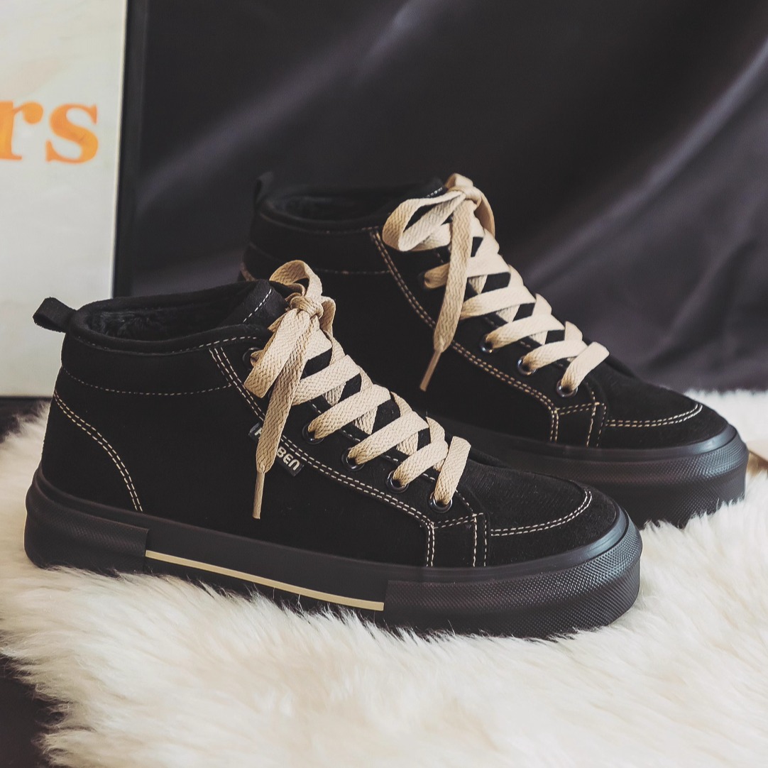 百搭学生休闲运动小众厚底板鞋 新款 子女2025年秋季 环球黑色帆布鞋