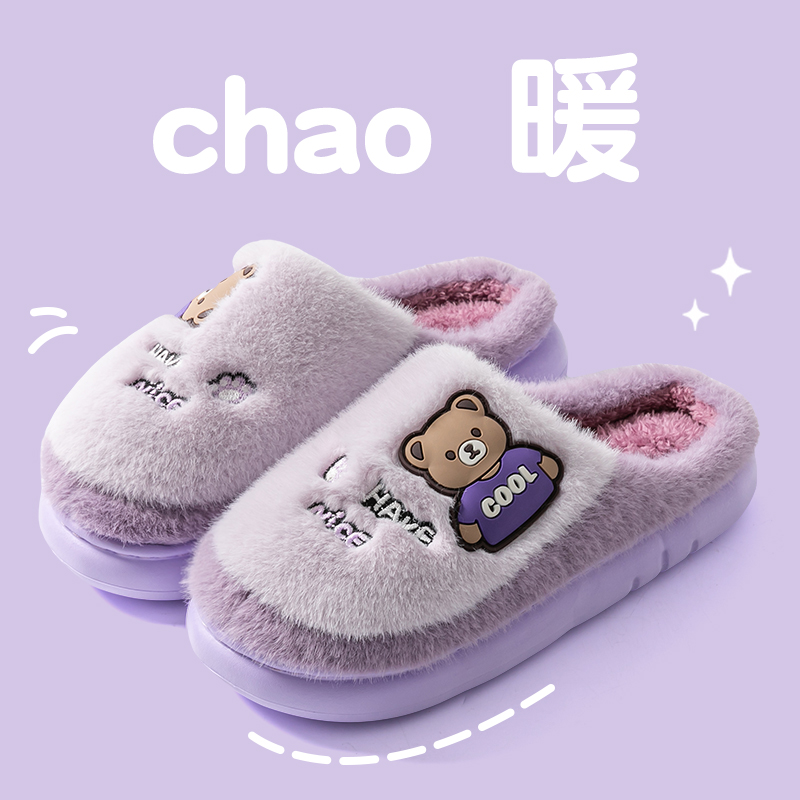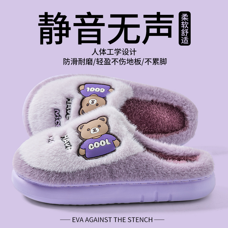 室内家居情侣一对厚底防滑保暖毛毛加绒棉鞋 2025新款 女冬季 棉拖鞋