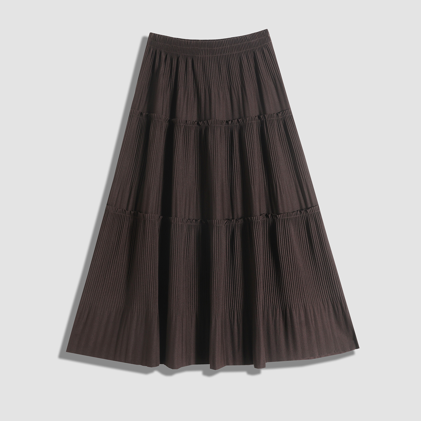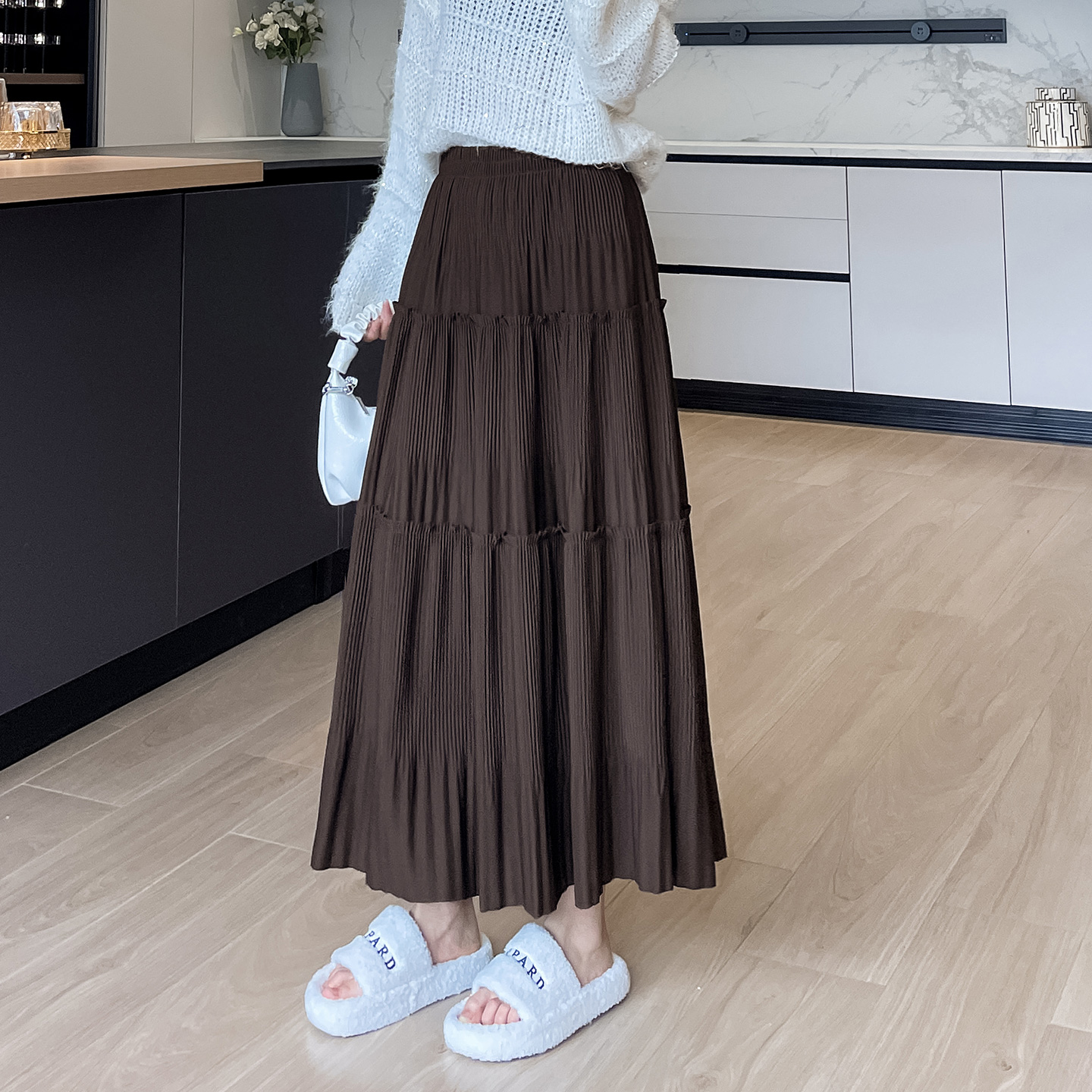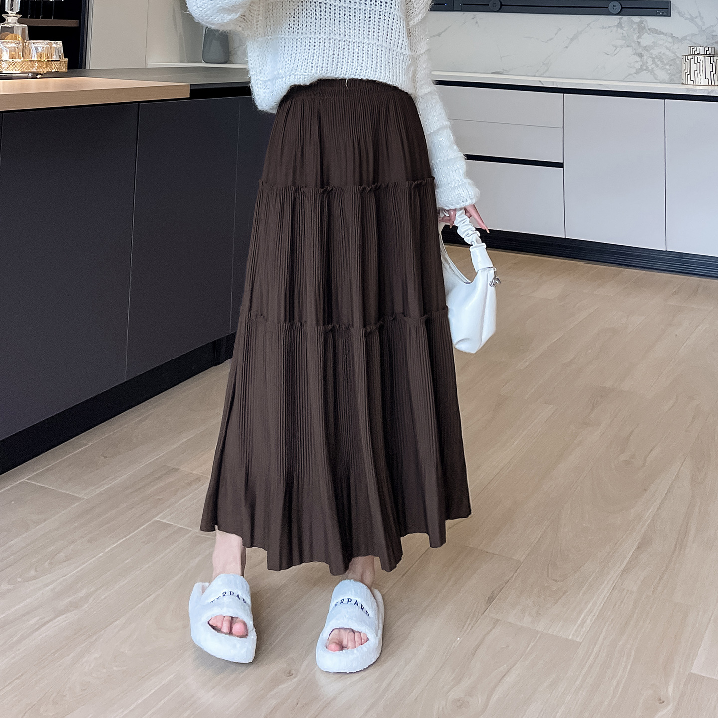 A字百褶裙 百搭中长款 丝绒半身裙女春秋款 松紧腰垂感显瘦加厚时尚