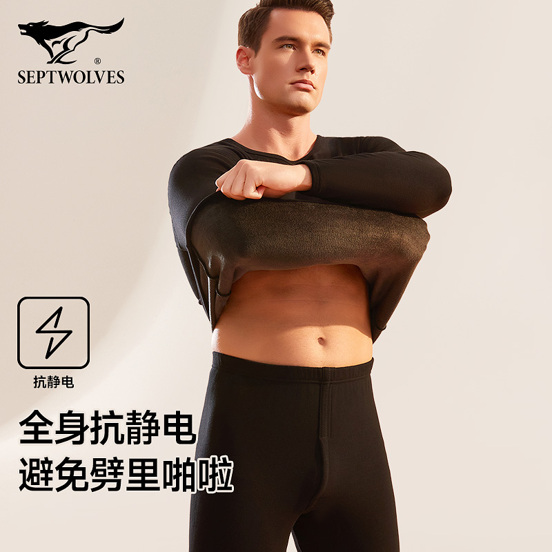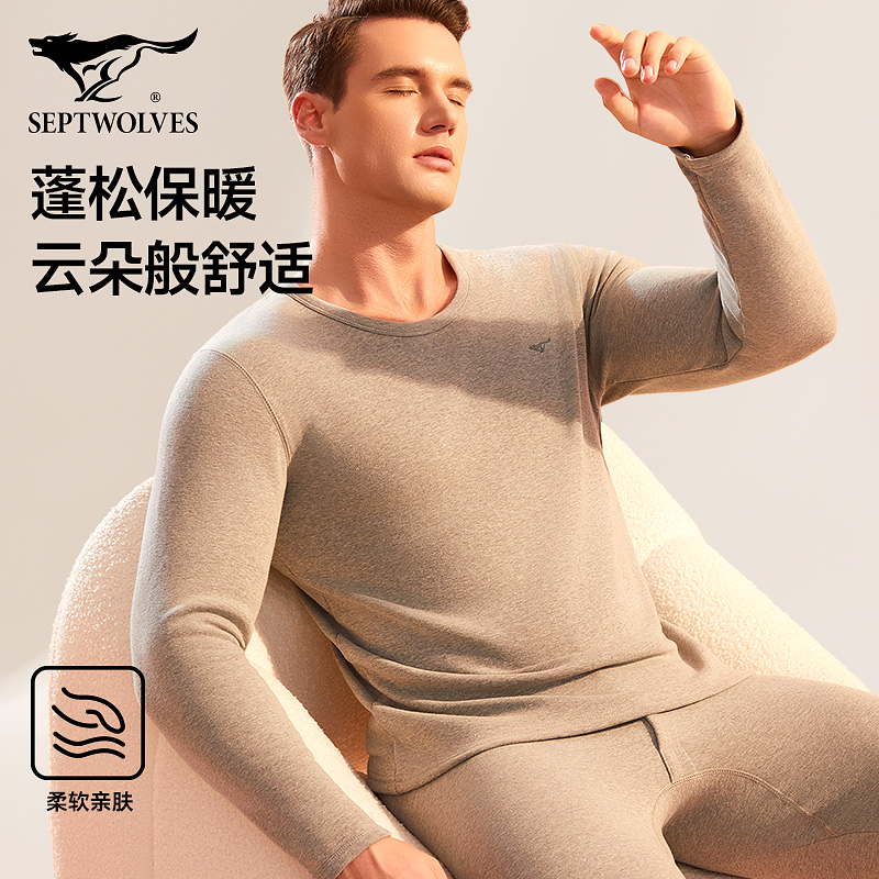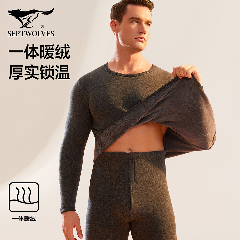 爸爸打底棉毛衫 套装 东北加厚秋衣秋裤 七匹狼加绒加厚保暖内衣男款