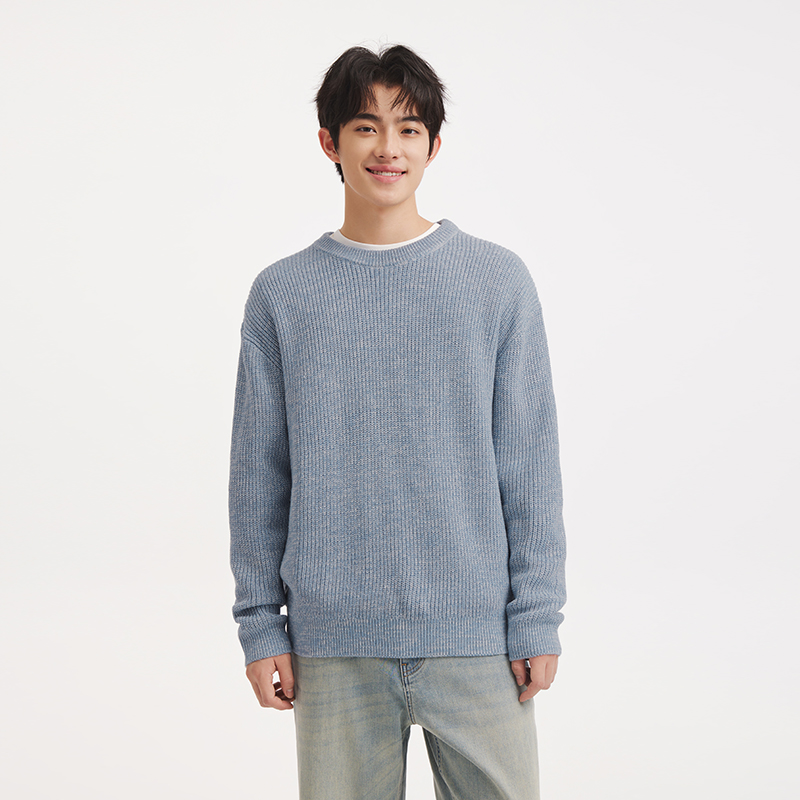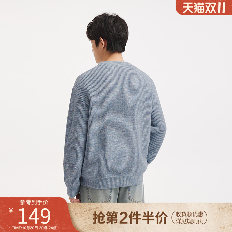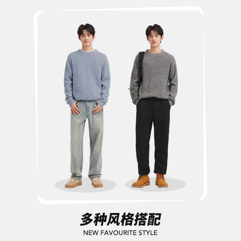 圆领时尚 HLA 25秋新款 针织衫 打底黑色毛衣男 海澜之家山不在高长袖