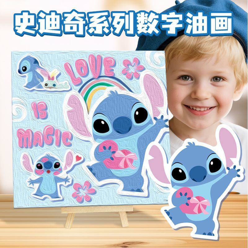 迪士尼数字油画diy卡通草莓熊玩具员手绘涂色手工填色画装 饰挂画
