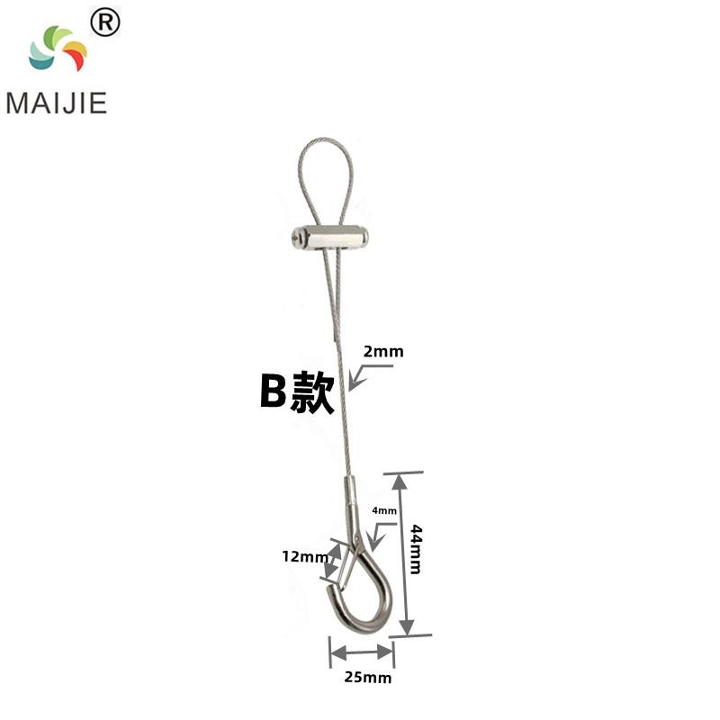 灯具吊绳伸缩大挂钩可调节304不锈钢丝挂绳钢丝吊码 线器挂画 锁线