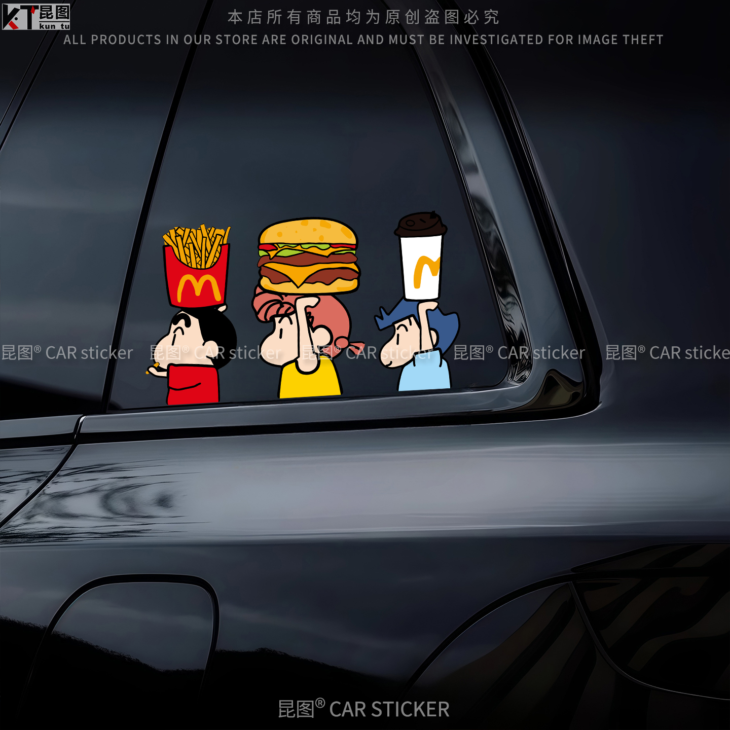蜡笔小新汽车贴纸车尾创意搞笑装 饰电动车雅迪九号小牛划痕遮挡贴