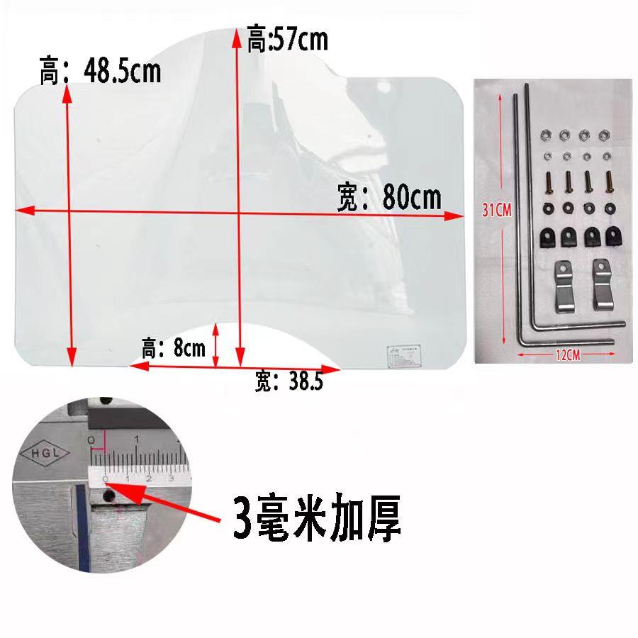 加厚125摩托车电瓶车前上下挡风玻璃通用泥板 防风雨罩PC高清透明