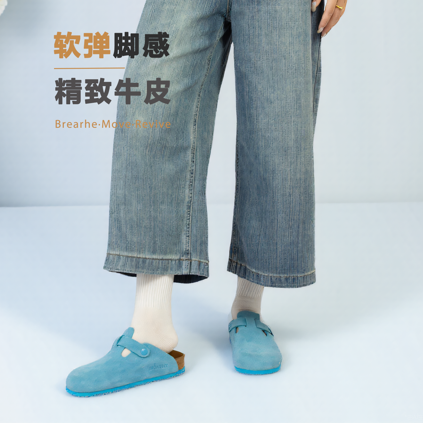 半包头舒适厚底增高孕期一脚蹬真皮软木鞋 勃肯鞋 2025新款 女鞋 拖鞋